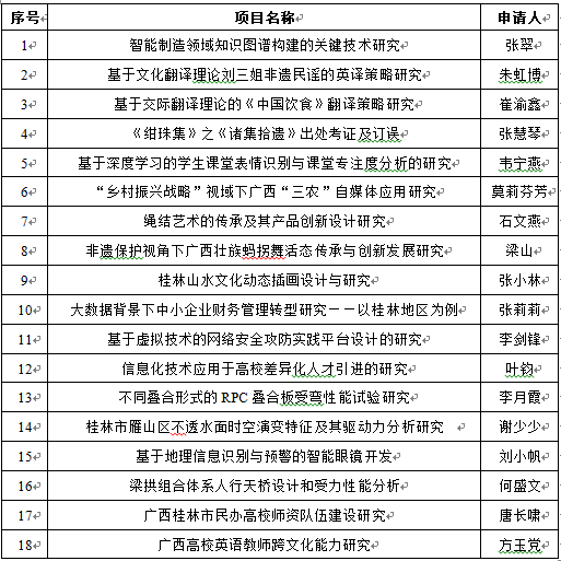 根据《治区教育厅关于组织申报2021年度广西高校中青年教师科研基础能力提升项目的通知》(桂教科研〔2020〕20号)要求,由项目负责人自主申请,二级单位、部门推荐,经学校组织学术工作委员会委员评审,对项目的创新性、可行性、实用性及推荐材料真实性进行评审,根据限项要求,现将推荐结果公示如下: