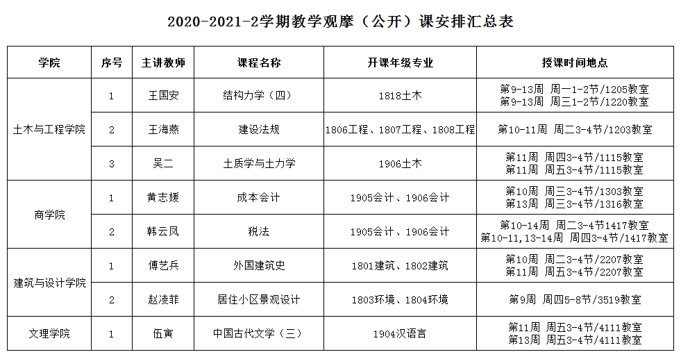 为了充分发挥优秀教师的带头与示范作用,促进教师之间教学经验、教学方法等的学习交流,提高我校教师的教学能力和教学水平,促进人才培养质量的不断提高,经由学院推荐、学校审核,决定《结构力学(四)》等课程作为本学期的观摩(公开)课。