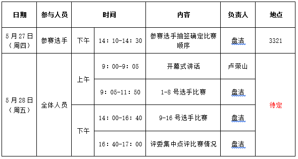 第十一届全校青年教师教学竞赛日程安排表