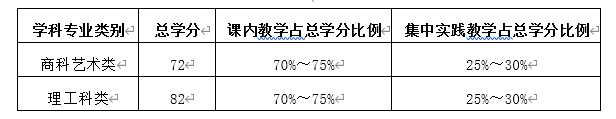 1.各专业总学分应在规定范围之内,课内教学与集中实践教学学分可在规定比例上下略有浮动。