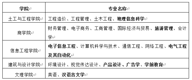 注意:加粗的专业为今年新增招生专升本专业。