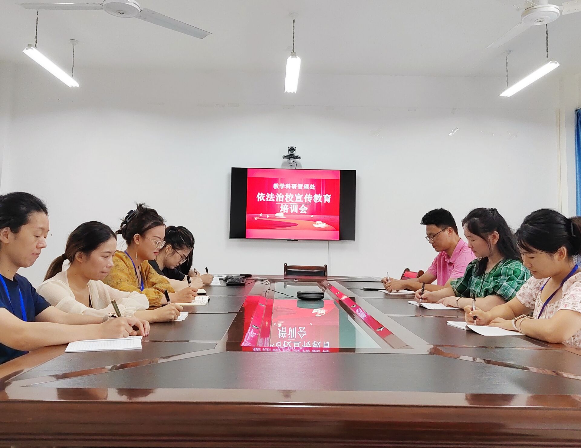 为深刻认识和把握新时代新形势对学校治理提出的新任务新要求,坚持全面推进依法治教、依法办学、依法治校的工作,深入推进“八五”普法工作规划的实施,加强法治宣传教育,传承社会主义法治精神,以及提高干部群众遵法学法守法用法的自觉性和主动性,6月16日,教学科研管理处举办了一场以依法治校为主题的宣传教育培训会。该会议由教研处处长朱新会主持,全体职工积极参与。