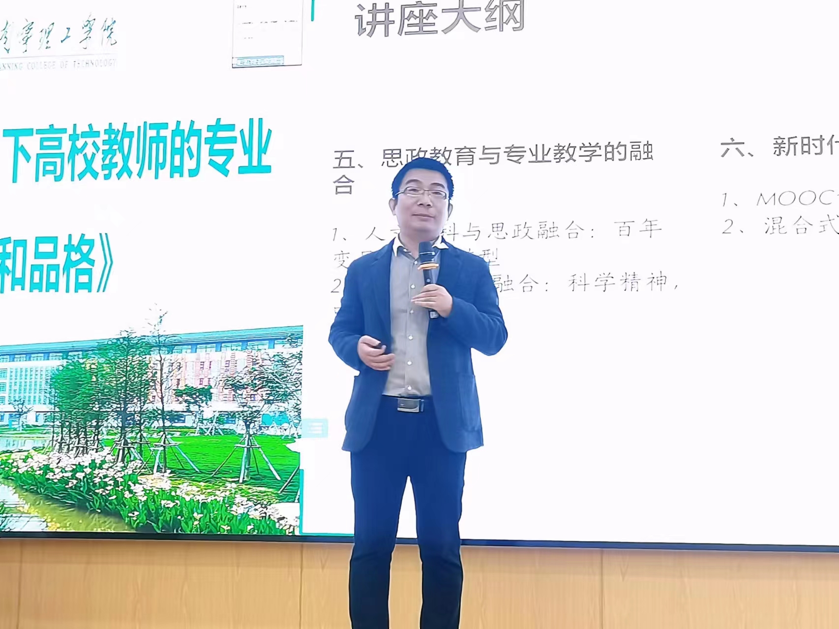 讲座中,牛教授指出,新时代的高校教师,不仅需要具备崇高的职业道德,还应具备完善的职业素养。新时代应教师之道的本质和灵魂在于教师有仁爱精神,教师要以德立身、以德立学、以德立教、以德育德。正如《论语·雍也》:“夫仁者,己欲立而立人,己欲达而达人。”他表示,新时代思政教育应与教师的专业教学相融合。人文社科要实现有灵魂有使命的教育,强调教育的价值性、思想性、超越性、使命性和灵魂性。建设新理工,需要具备新理念。在教育中,教师要强调以下核心素养:科学精神、家国情怀、创新创业、学科融合、批判思维、全球视野、终身学习、沟通合作。