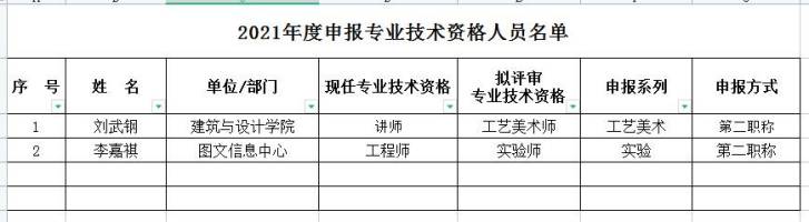 根据《关于做好2021年度全区职称评审工作的通知》(桂职办〔2021〕14号)和《关于做好2021年度全市职称评审工作的通知》(市职办〔2021〕1号)等各级、各系列专业技术资格评审工作相关文件精神,经基层单位推荐,现对刘武钢、李嘉祺2位同志申报2021年度专业技术资格的申报材料予以公示。公示期从2021年9月13日至9月19日,材料公示地点在人事处3214办公室。如对所公示的人员有异议,请于2021年9月13日17:00前以书面方式向学校职称改革工作领导小组办公室反映,书面材料请签署本人真实姓名并附联系方式。真实反映意见者受国家法律保护(根据文件规定,匿名意见不予受理)。学校职改办联系电话:8998066。