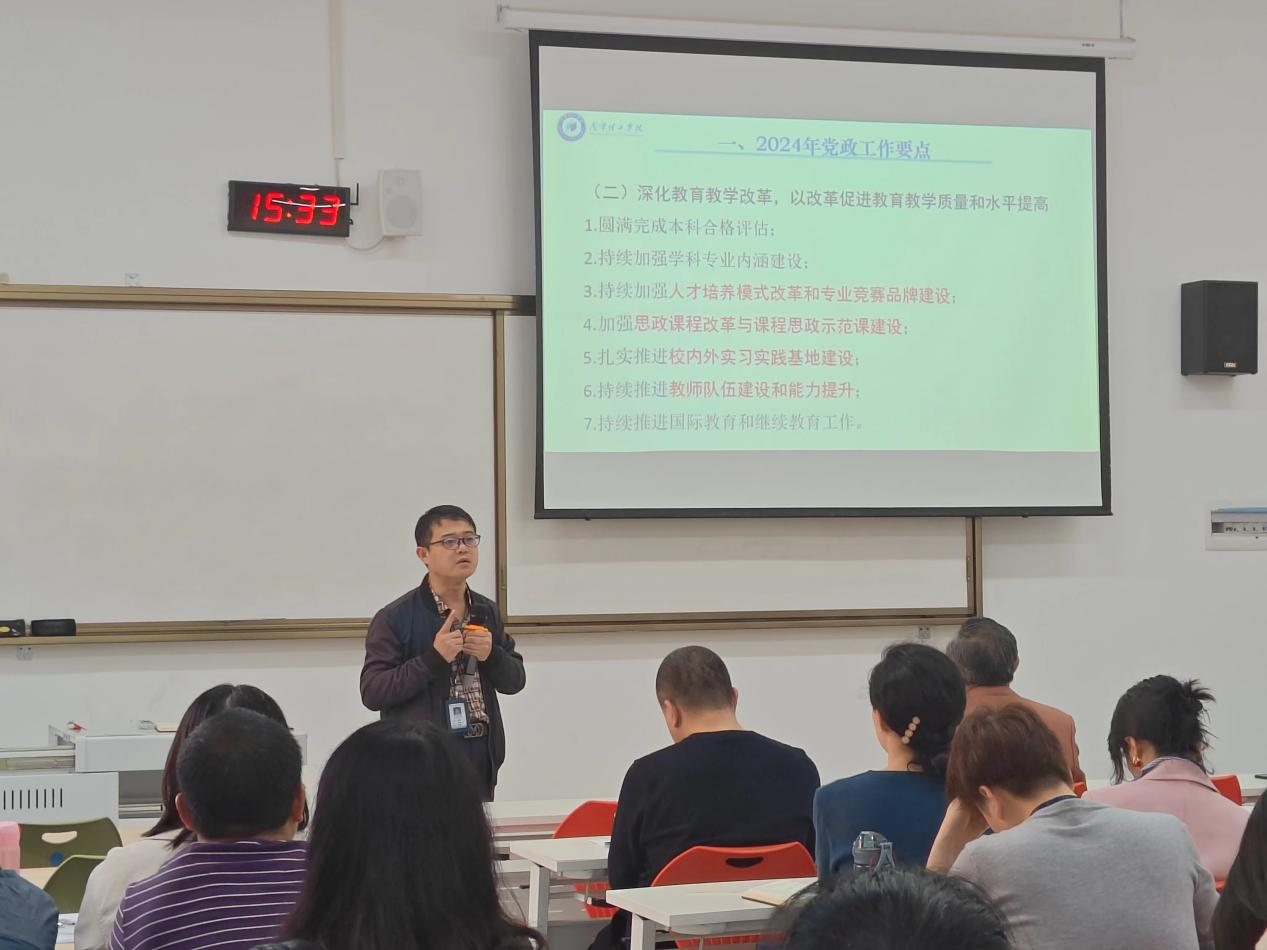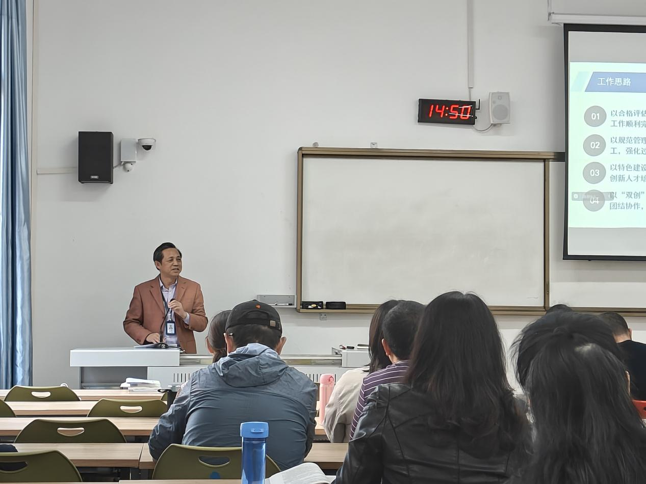 然后,囤荣立副院长传达学校2024年党政工作要点和新学期教学工作重点,就近期迎评工作做了详细安排。