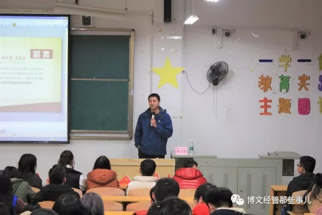 11月30日12时15分商学院在4502教室举办了主题为“品读榜样,争当优秀共青团员”的团课活动。本次团课由林超琴老师主讲,其内容分为四点: