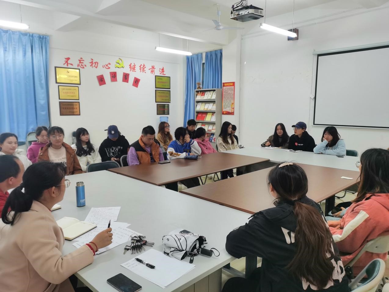 2021年11月9日下午,商学院在1410会议室组织开展学生座谈会。本次会议由谢启禧老师和闭凤玲老师主持,各班学习委员参加此次会议。