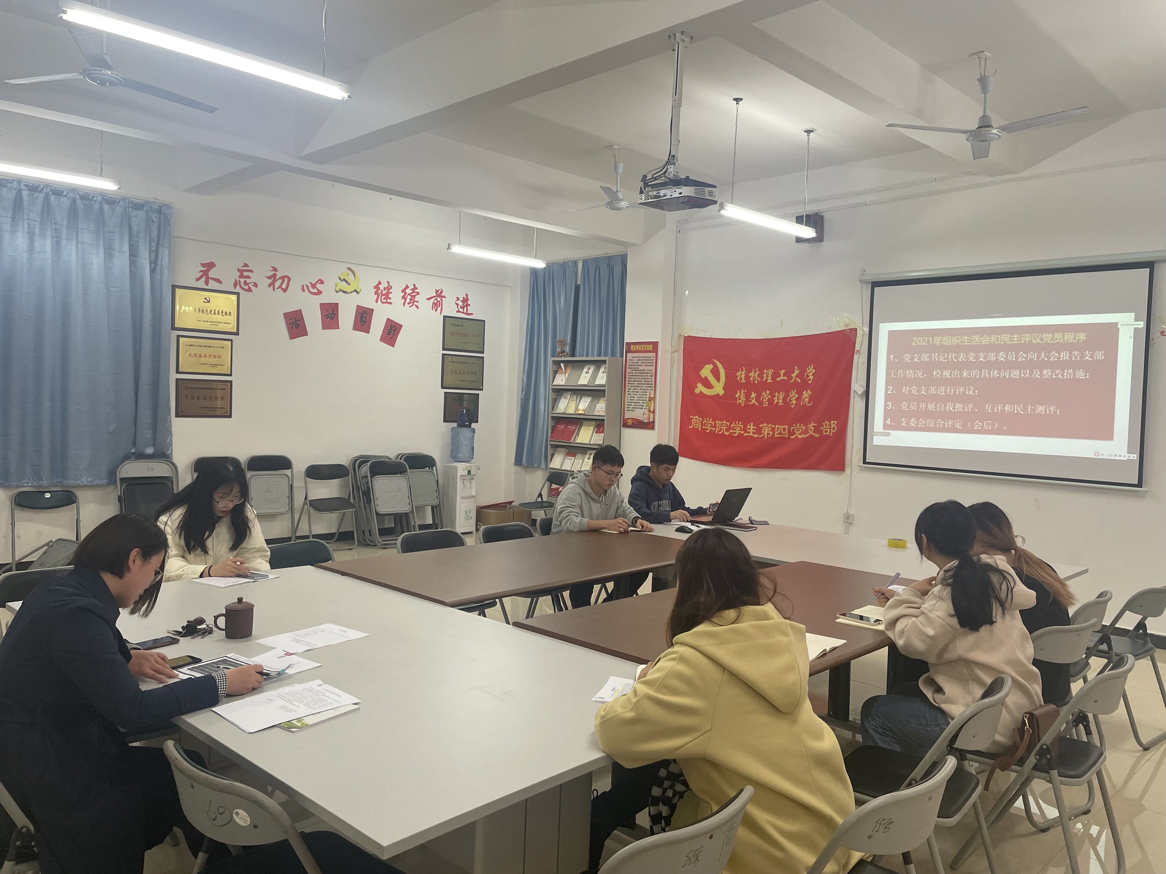 2021年12月21日,商学院学生第四党支部在1410会议室召开组织生活会暨民主评议党员,全体党员参加会议,本次会议由支部书记李欢同志主持。