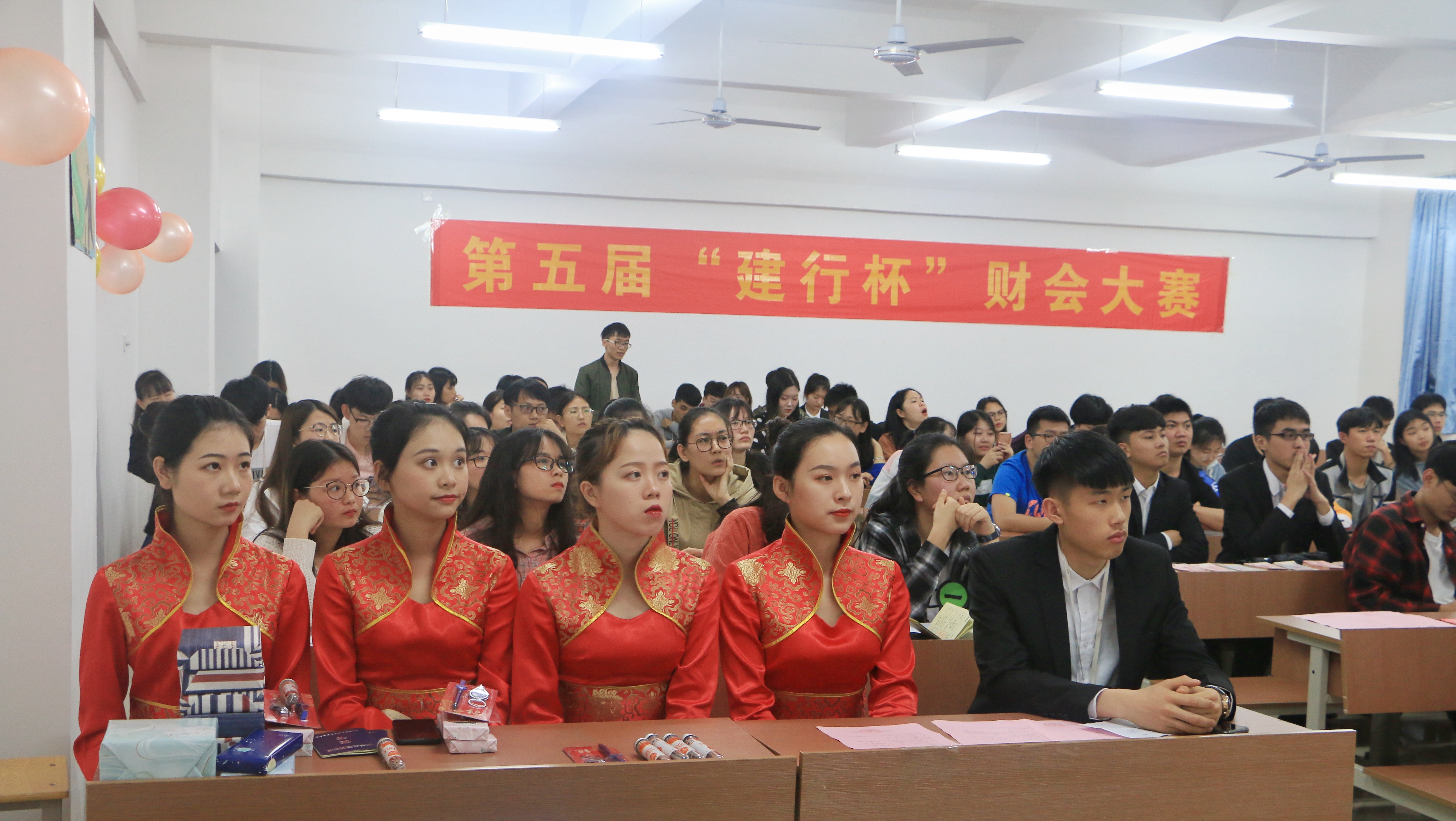 为夯实专业品牌活动,打造专业精英,提高学生实践能力。商学院在1417教室举办第五届“建行杯”财会大赛决赛,出席本次大赛的评委有商学院教授、中国建设银行桂林分行高新支行行长袁冠雷、商学院教师、中国建设银行桂林分行高新支行经理罗莹莉、分团委书记章昊、商学院辅导员。由王佳琪作为本次活动的主持人。