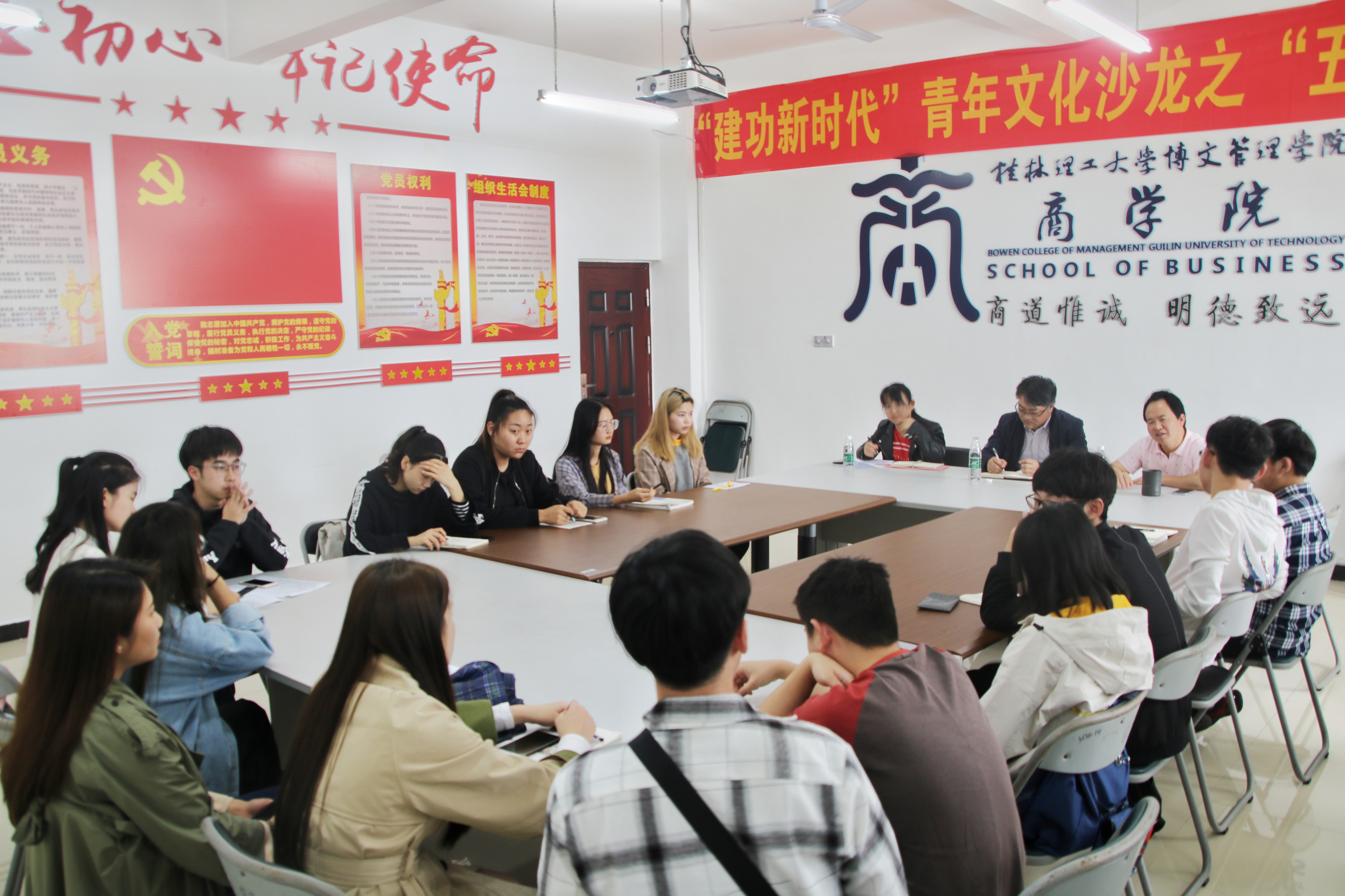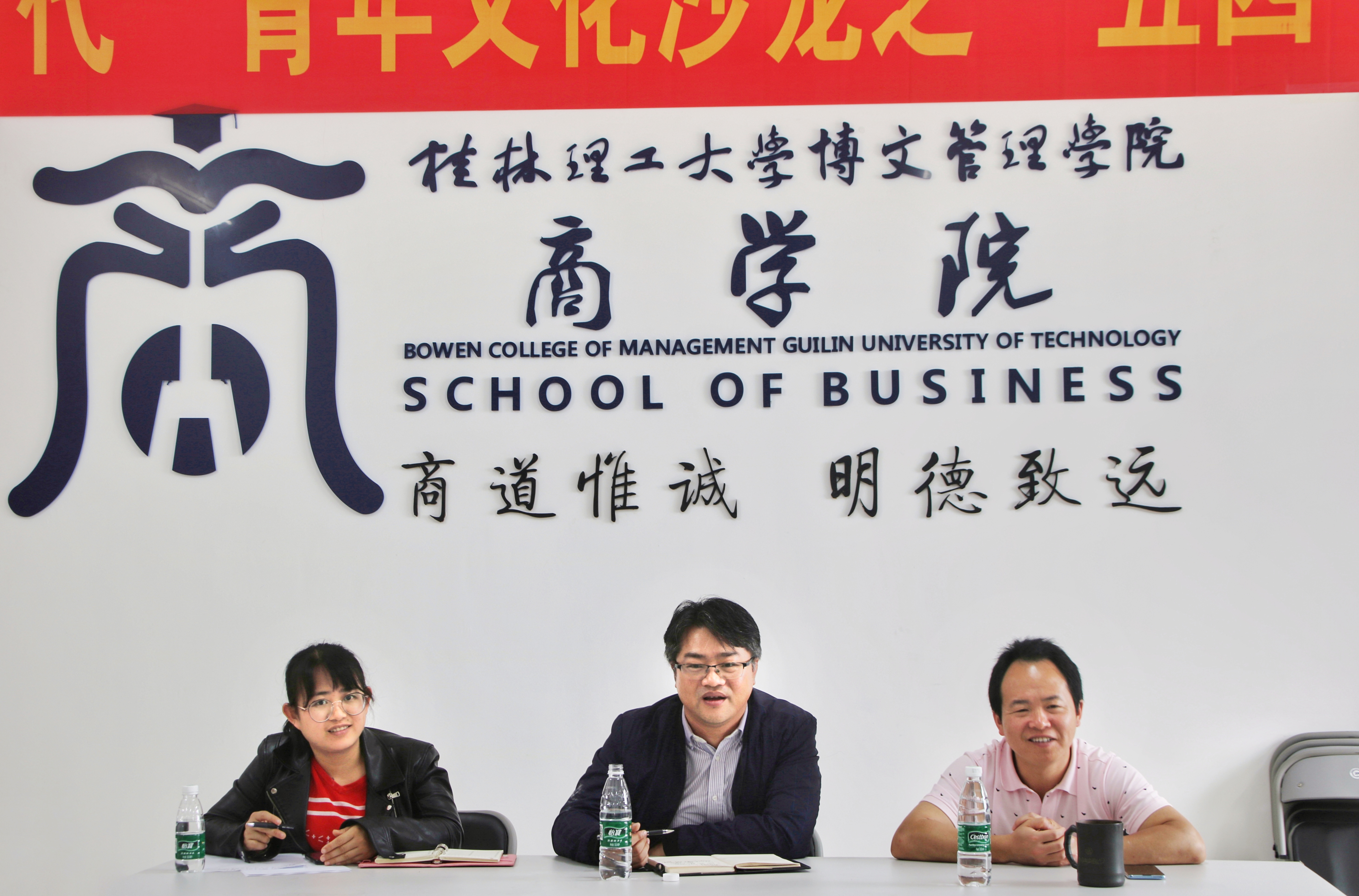 为了加强师生间的交流,及时反映教育教学工作中存在的问题,进一步改善学习环境和推动学院管理水平的提升。5月8日,商学院师生座谈会1410会议室召开,参加此次座谈会商学院副院长、商学院教学秘书、商学院辅导员以及商学院17、18级学生代表。本次座谈会由老师主持。