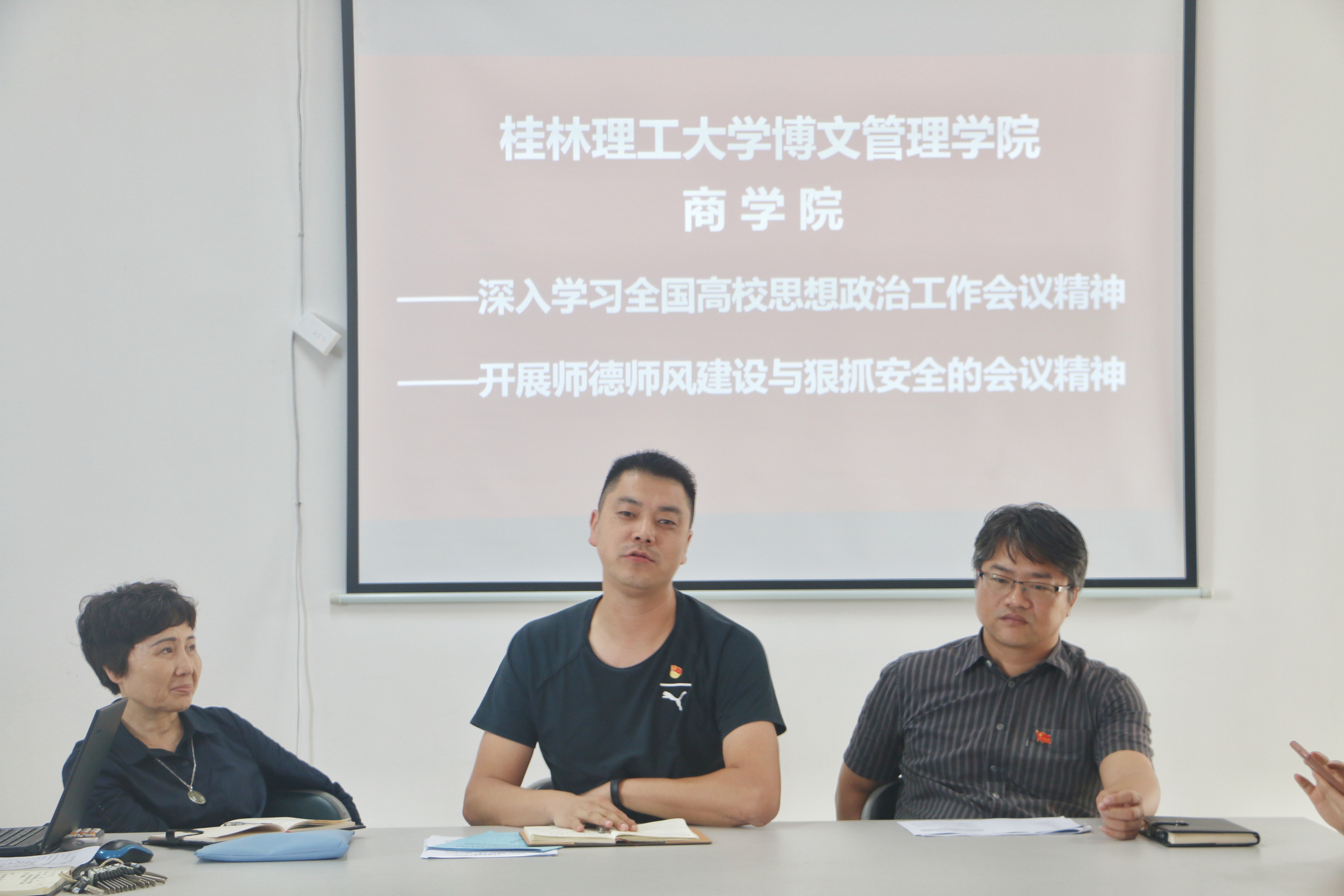 为进一步贯彻落实中央和自治区关于立德树人、加强高校思想政治工作的要求,根据《桂林理工大学2019年师德师风建设年活动方案》部署,5月14日下午,商学院在1410会议室深入学习全国高校思想政治工作会议精神和开展师德师风建设工作会议。学院领导、、以及全院教职工参加此次会议。会议由书记主持。