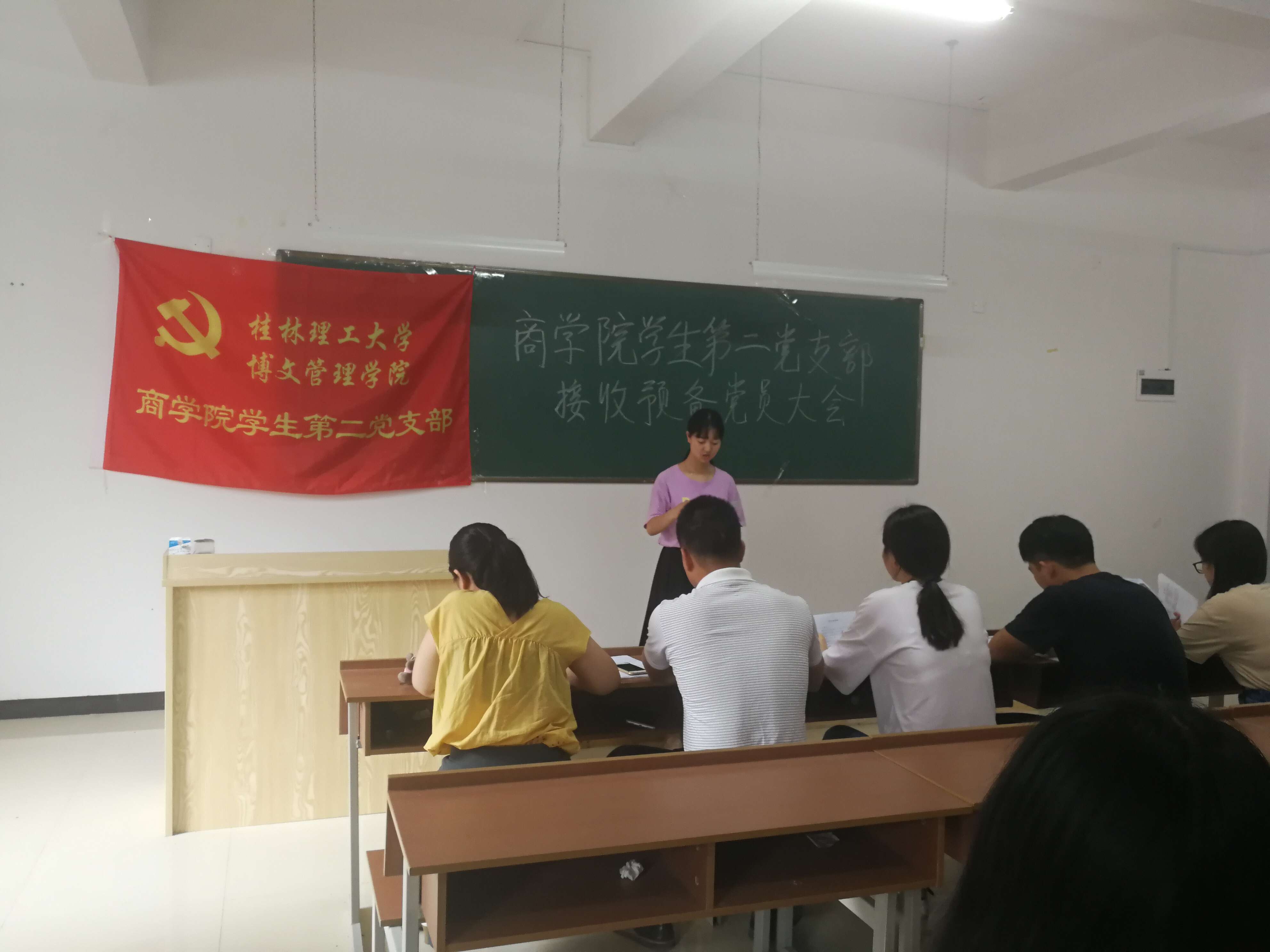 6月12日,商学院学生第二党支部在1408教室召开接收预备党员大会。本次大会主要讨论接收蔡俊芳等5位同志为中共预备党员的相关事宜。学生第一党支部书记同志代表学院党总支出席会议,学生第二党支部全体党员及党员发展对象参加会议。大会由学生第二党支部书记张娅同志主持。