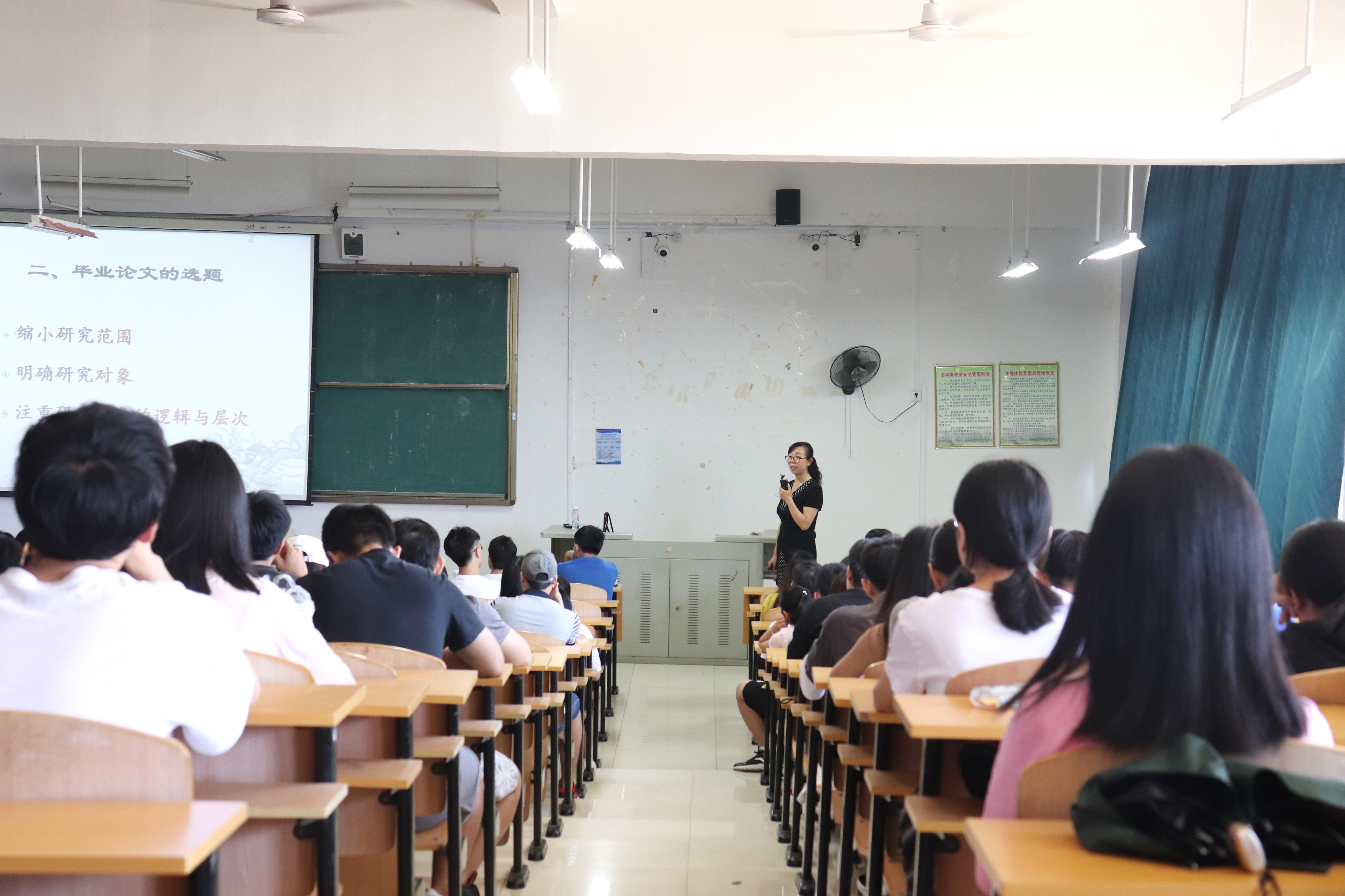 动员会上,刘教授从毕业论文的重要性、选题、资料收集、撰写、关键提示六个方面给同学们讲解了如何撰写一篇完整的毕业论文。随后,她展示了撰写毕业论文的正确格式和撰写开题报告的方法及注意事项。最后,老师详细讲解了16级财务管理专业毕业论文的时间安排和需要完成的材料,并要求同学们按时完成“读书笔记”和“工作记录本”。