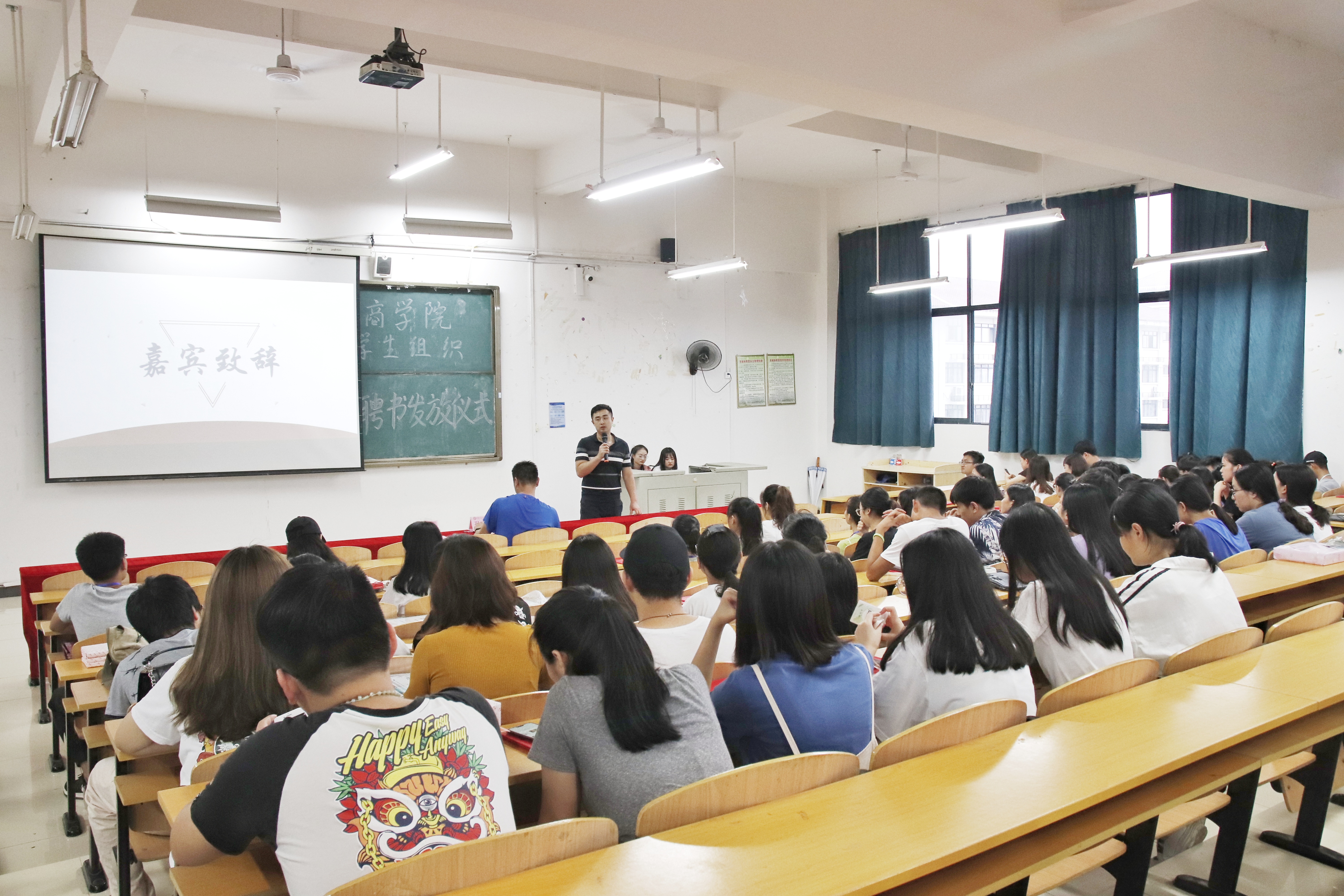 商学院各学生组织于6月25日下午,在4502教室发放聘书。本次参加聘书发放仪式的组织有商学院分团委·学生会、新媒体中心、学生事务服务中心、红心大学生志愿服务队、创新创业学会和年级委。出席本次发放仪式的嘉宾有商学院党总支书记和分团委书记章昊。