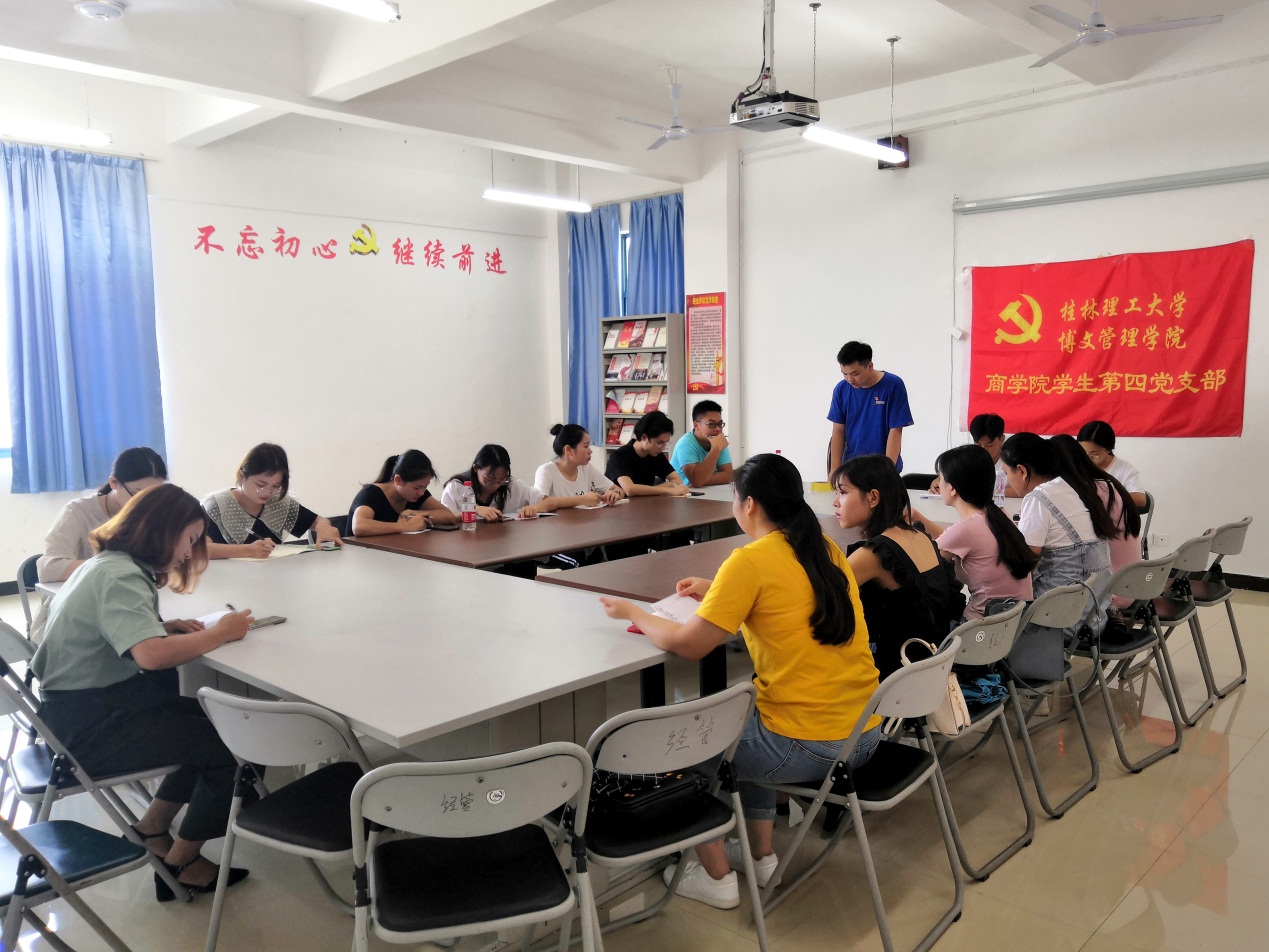 为深入贯彻落实习近平总书记对黄文秀同志先进事迹的重要指示精神,2019年9月6日,商学院学生第四党支部在会议室1410开展向黄文秀同志学习主题党日活动,活动由商学院学生第四党支部书记同志主持。