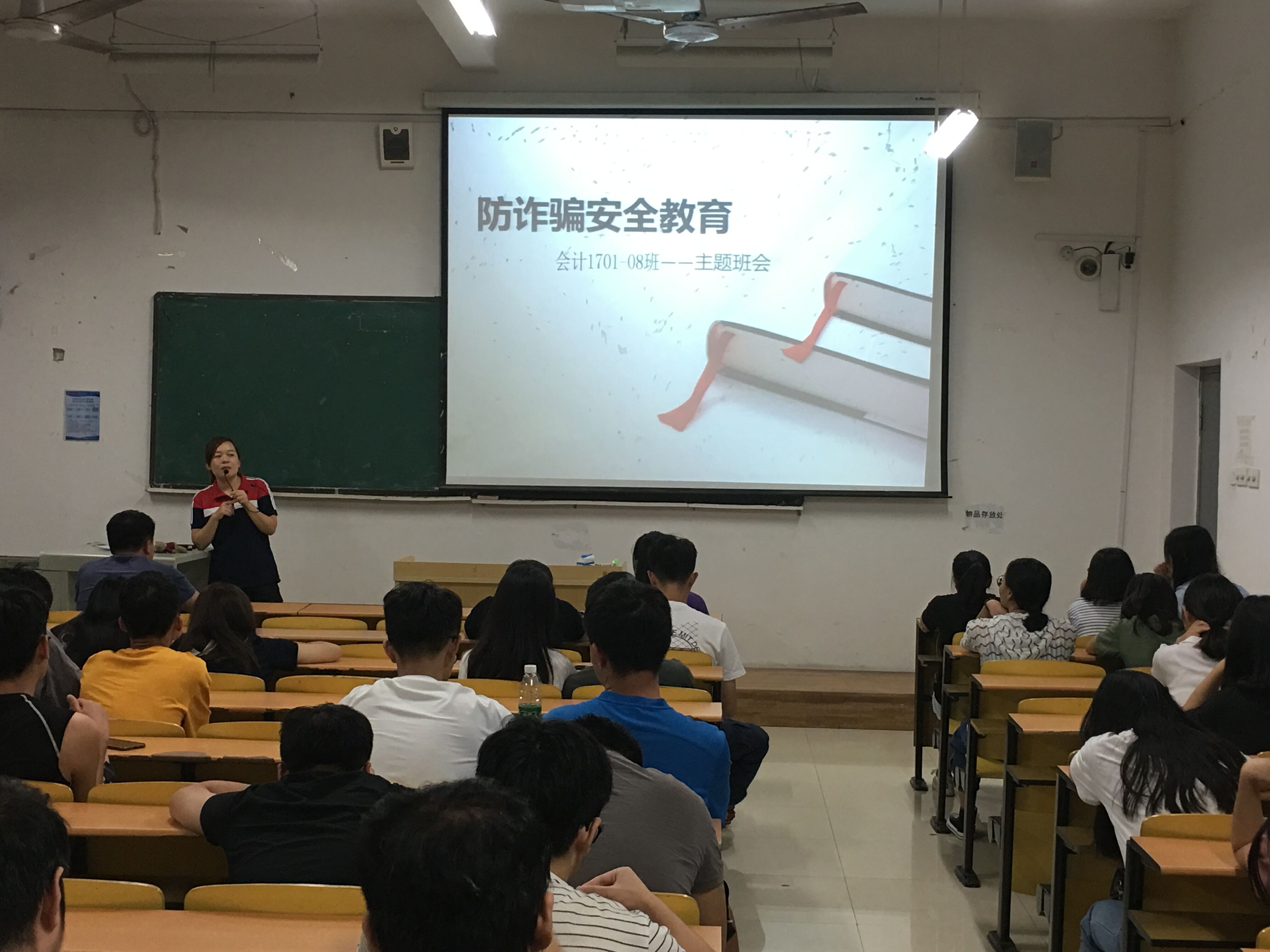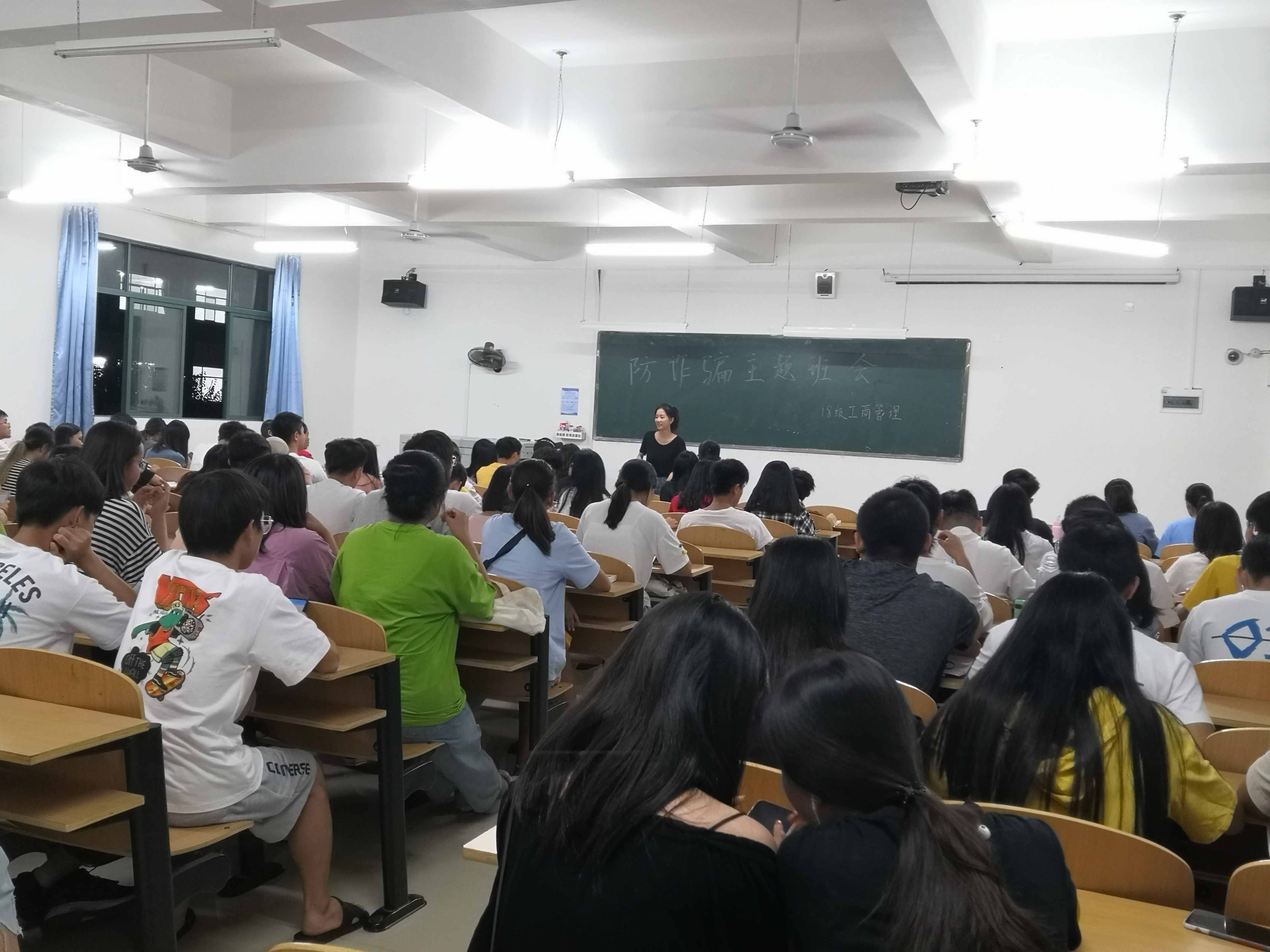 为帮助同学们进一步增强安全防范意识,提高辨别和自我保护能力,9月22日,商学院各专业召开防诈骗主题班会,由各专业辅导员主讲。