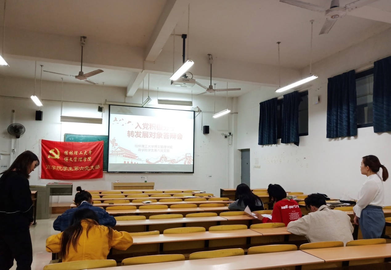 10月17日下午,商学院学生第六党支部在4111教室召开了入党积极分子转为发展对象的谈论会。本次大会由支部书记李贵金主持,党员同志与入党积极分子参加会议。