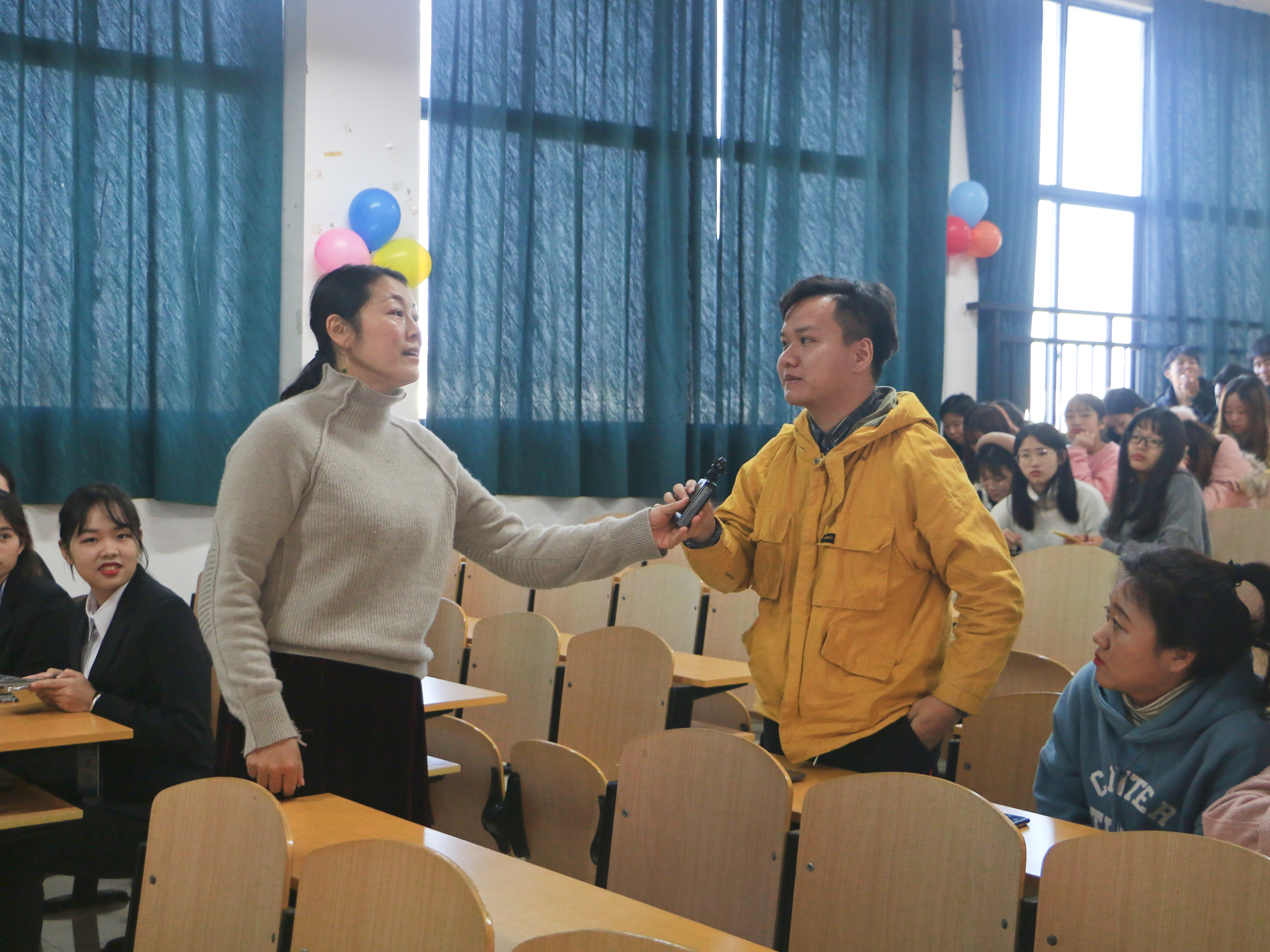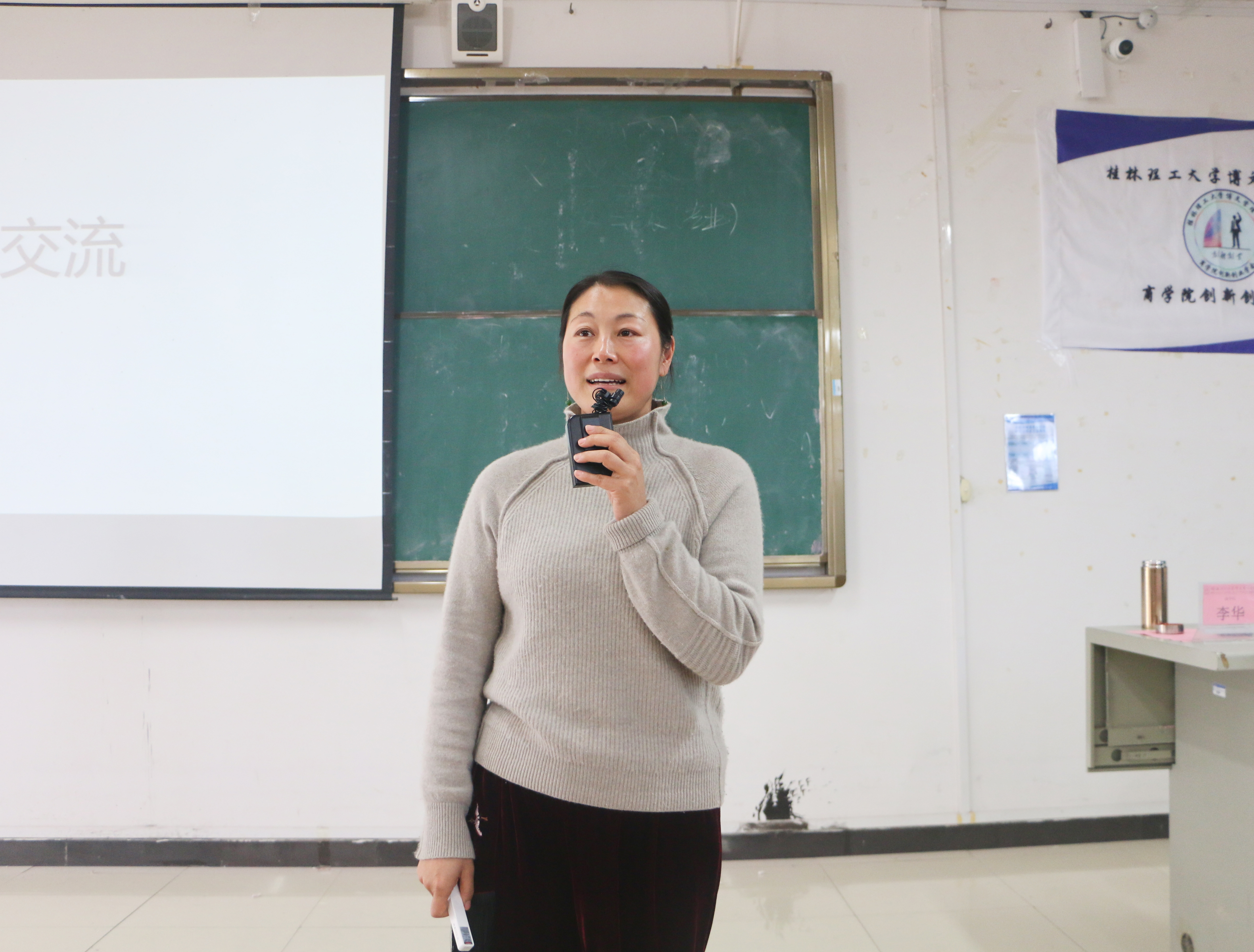 老师结合自身的创业之路,向大家分享自己的成功经验,并总结出了“大事”“未来”“例外”这六个字,激发了同学们的创新思维,破解常规思维定势。随后,老师提出创业创新最主要的是思考和观察,要有自己独特的想法。并向同学们讲述了以往有关创新创业的比赛,点出比赛的要求,让同学们对创新创业比赛有了进一步的了解。在互动环节中,同学们积极举手提问,从创新创业比赛申报的流程,怎样组建自己的创业团队等问题向老师提出自身了的困惑,针对同学们提出的问题,老师一一为同学们进行了详细的解答并提出了个人建议。
