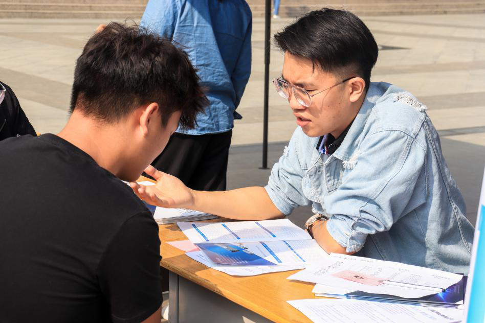 11月21日,商学院2021届毕业生双选会在一栋教学楼广场举行。学院党总支副书记、商学院分团委书记和17级辅导员来到双选会现场,了解各用人单位的招聘需求以及学生的应聘情况。本次双选会有纤亿通、融创、乐有家等十二家用人单位来我院招聘,为我院近1200名应届毕业生提供就业岗位。