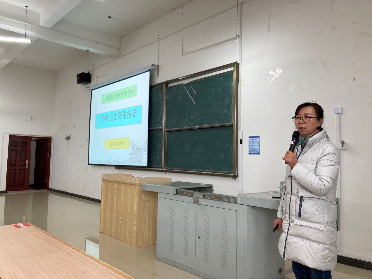 本次动员会分两个部分,第一部分由老师对毕业论文工作进行动员,卢老师介绍本科生毕业论文写作要求及毕业论文工作的流程、时间安排、毕业论文资料要求等工作进行了介绍,并要求同学们重视毕业论文的工作。第二部分为论文写作指导讲座,由财务管理专业学科带头人教授就论文选题、写作、指导等内容进行讲解与指导。最后由老师公布论文分组名单及指导老师名单,并要求同学们按时完成论文写作的各项任务,高质量完成毕业论文的各项考核任务。