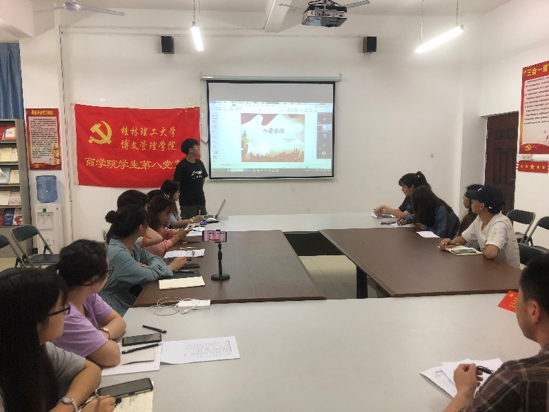 2021年5月14日晚,商学院学生第八党支部在1410教室组织开展了入党积极分子转发展对象答辩会。本次会议由王佳雨同志主持,支部全体党员和预备党员参加此次会议,校外党员参加线上视频会议。