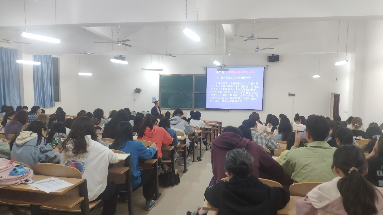 囤荣立老师重点讲述入党条件和党员标准,详细的向同学们解释了其具体含义,用他的工作经验、人生阅历,在课上游刃有余地诠释出各个观点,并通过身边优秀党员的品质来强调入党条件的重要性。通过讲述共产党的基本标准来激励同学们积极向党组织靠拢,向身边的党员学习,可以做到为身边的人服务。囤荣立老师也详细讲述了党员的义务和权利,讲台下的同学们也都对党的知识有了新的认识。