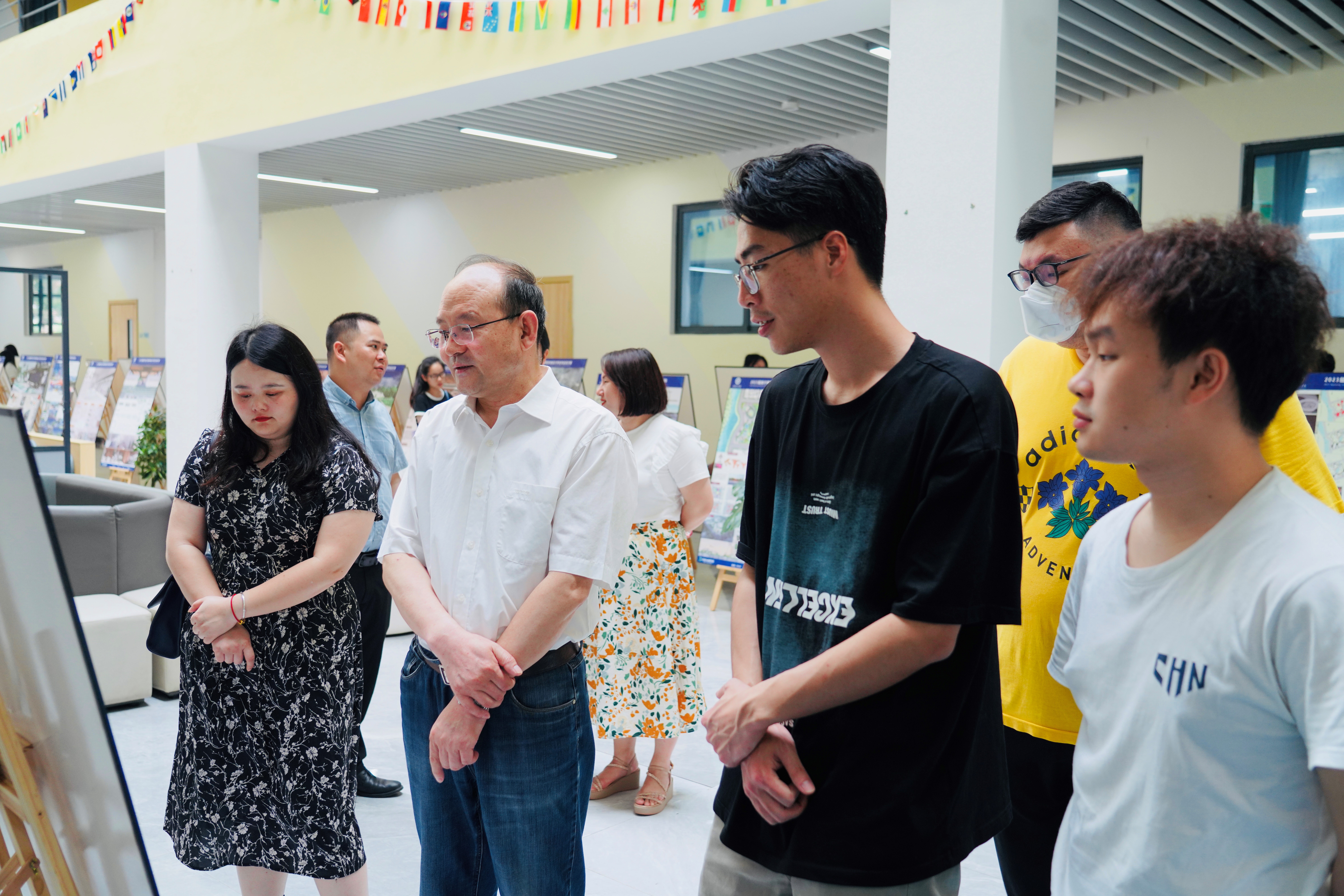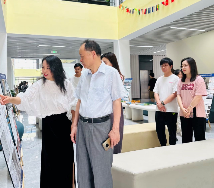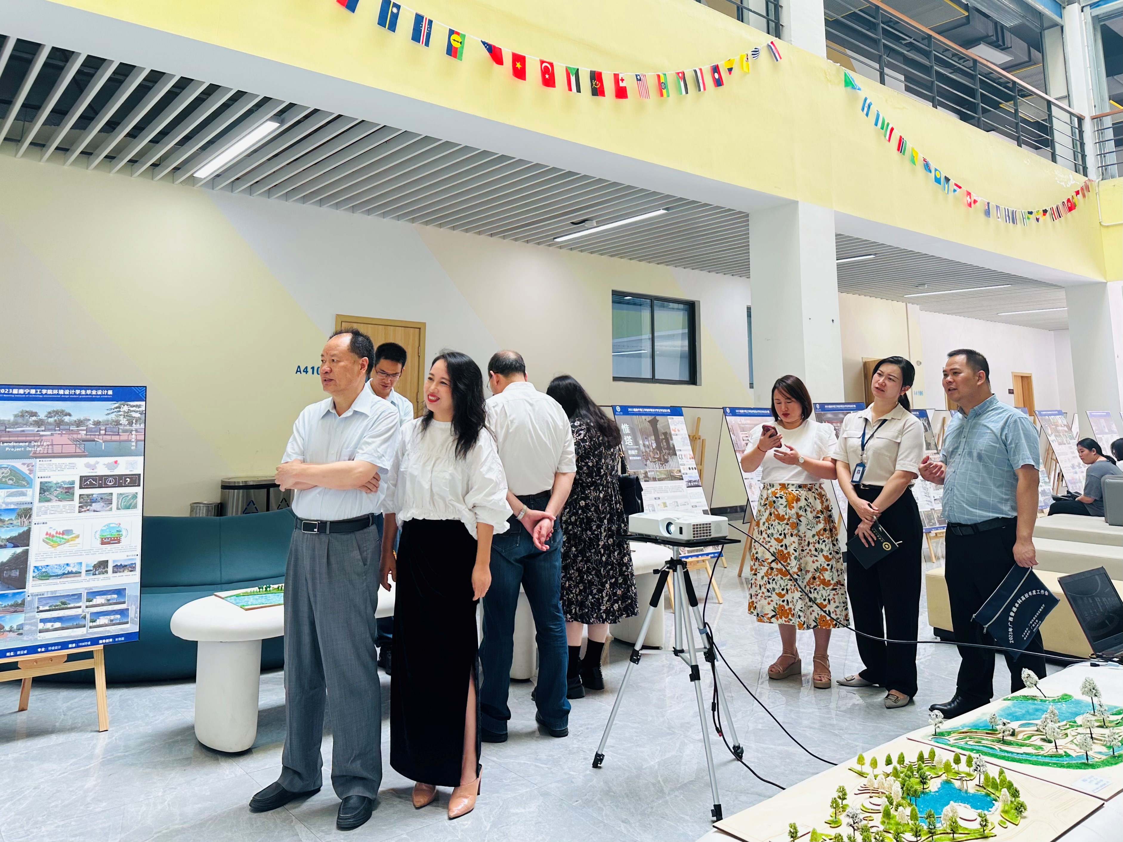 2023年5月18日上午9时,艺术与传媒学院环境设计专业2023届毕业设计作品展在东盟校区A4教学楼一楼大厅盛大开幕。此次展览共展出180余件优秀作品,本次毕业设计展展示了学生们在环境设计领域的才华和创意。学校董事长尹少华,校长王金叶亲临现场指导;党政办、教研处、学院有关负责人和环境设计专业师生参加活动,共同见证了这一美好时刻。