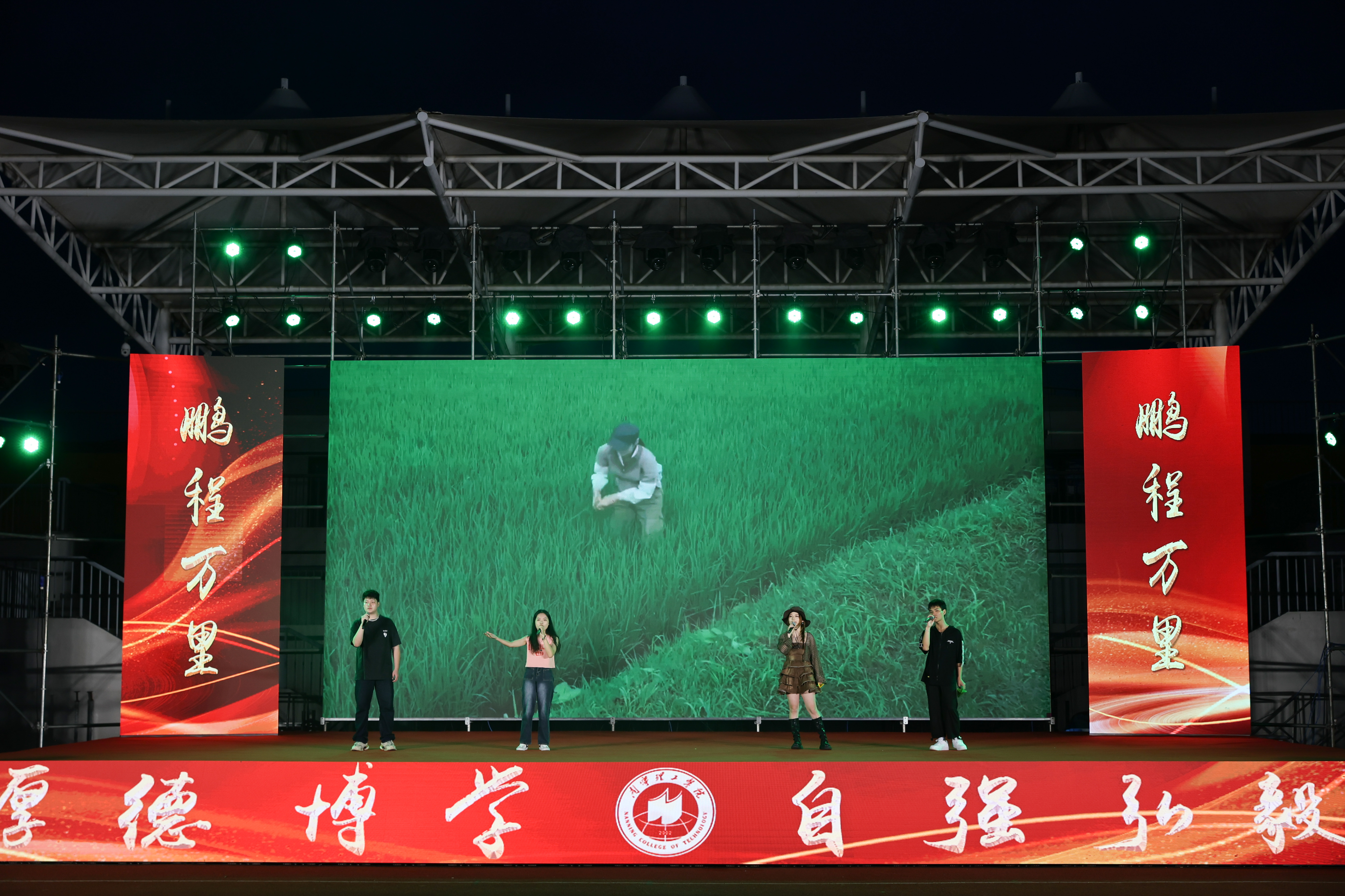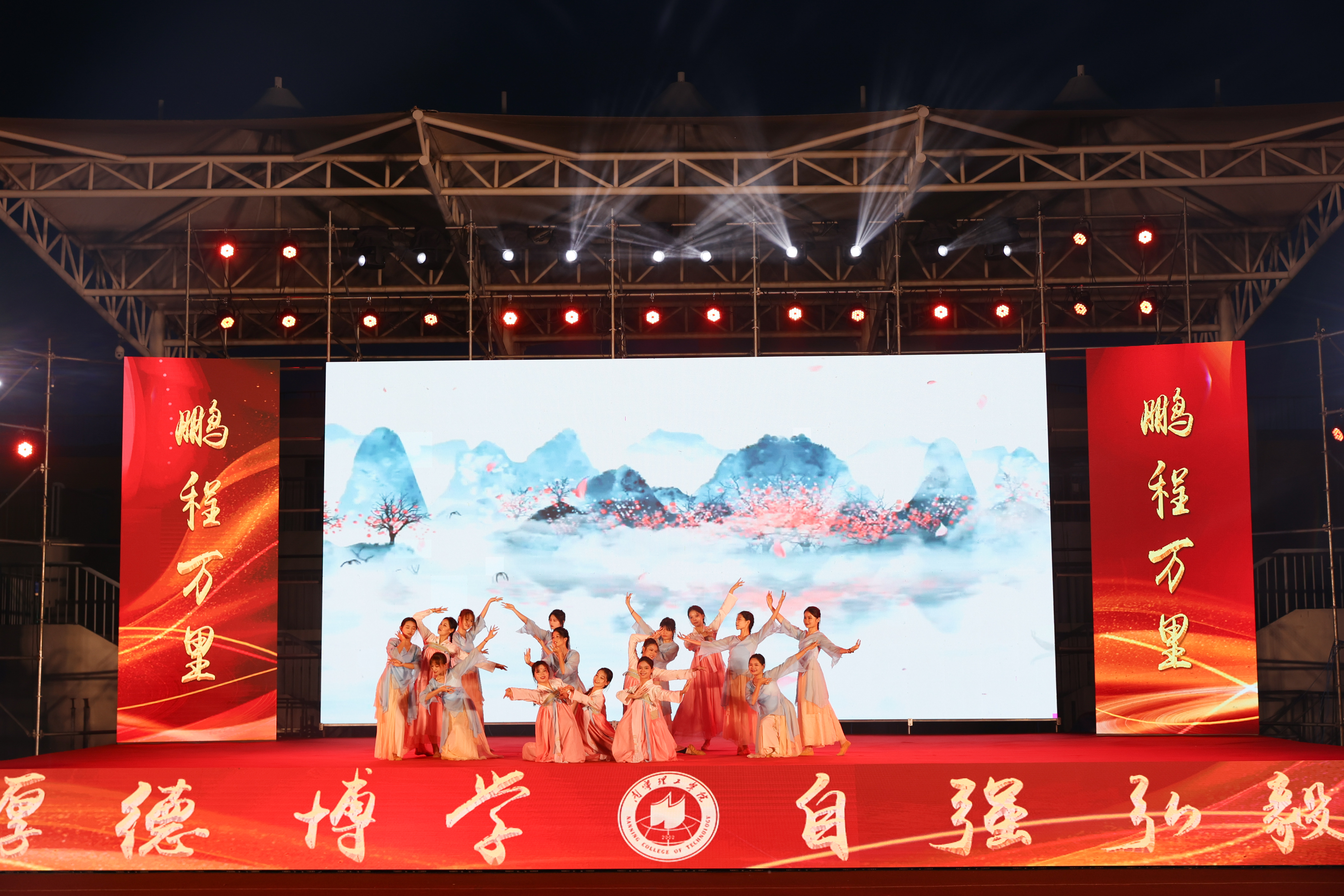 本次晚会分为“鹏程万里”、“逐梦星辰”、“奔赴未来”三个篇章。首先,晚会在一段动感的舞蹈《adios》中拉开序幕,节奏感十足的音乐调动了全场的氛围,点燃了台下同学们的热情。在青春洋溢的气氛中,晚会正式开始,迎来第一篇章“鹏程万里”。歌曲《无人区玫瑰》愿南理学子像玫瑰一样,绽放出属于自己独特的魅力;舞蹈《捻花归》展现了南理学子们昂扬向上,朝气蓬勃的风貌,赢得了台下观众热烈的掌声;由大学生艺术团带来的合唱《稻香》,动感的说唱与声乐吟唱的激情碰撞,唱出了同学们身上的乐观自信,追逐梦想的人生追求。