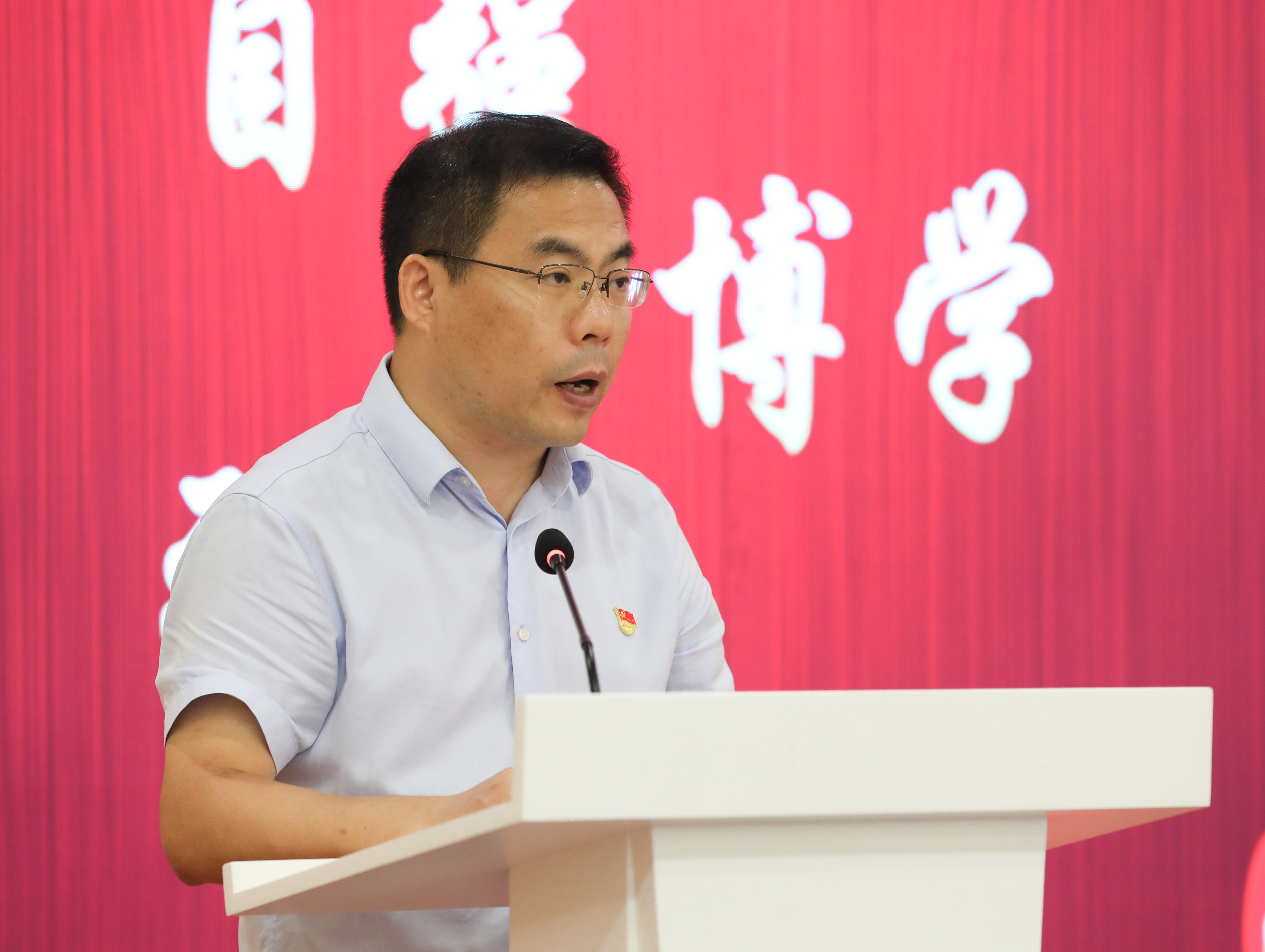 大会最后,党委书记、督导专员金飞作了题为《突出精神引领 强化使命担当》的讲话。他首先向受到表彰的先进集体和先进个人表示热烈祝贺和崇高敬意,向全体教职工致以节日问候和良好祝愿。其次,金飞提出了五点建议与全体教师共勉:一是为人师表,做高尚师德的坚定传承者;二是爱岗敬业,做热爱教育事业的无私奉献者;三是关爱学生,做学生健康成长的忠诚守护者;四是教学相长,做终身学习的不懈追求者;五是勇于创新,做教育改革的探索实践者。他希望全体教职工保持高涨热情、奋进姿态,发扬团结拼搏的爱校敬业精神,深刻认识在教育强国、科技强国、人才强国建设中肩负的光荣使命与重大责任,以人民教育家为榜样,牢固树立“躬耕教坛,强国有我”的志向与抱负,以培养堪当民族复兴大任的时代新人为已任,全员全方位全过程强化师德养成,争做“四有”好老师和“四个引路人”,努力培养更多德智体美劳全面发展的社会主义建设者和接班人。