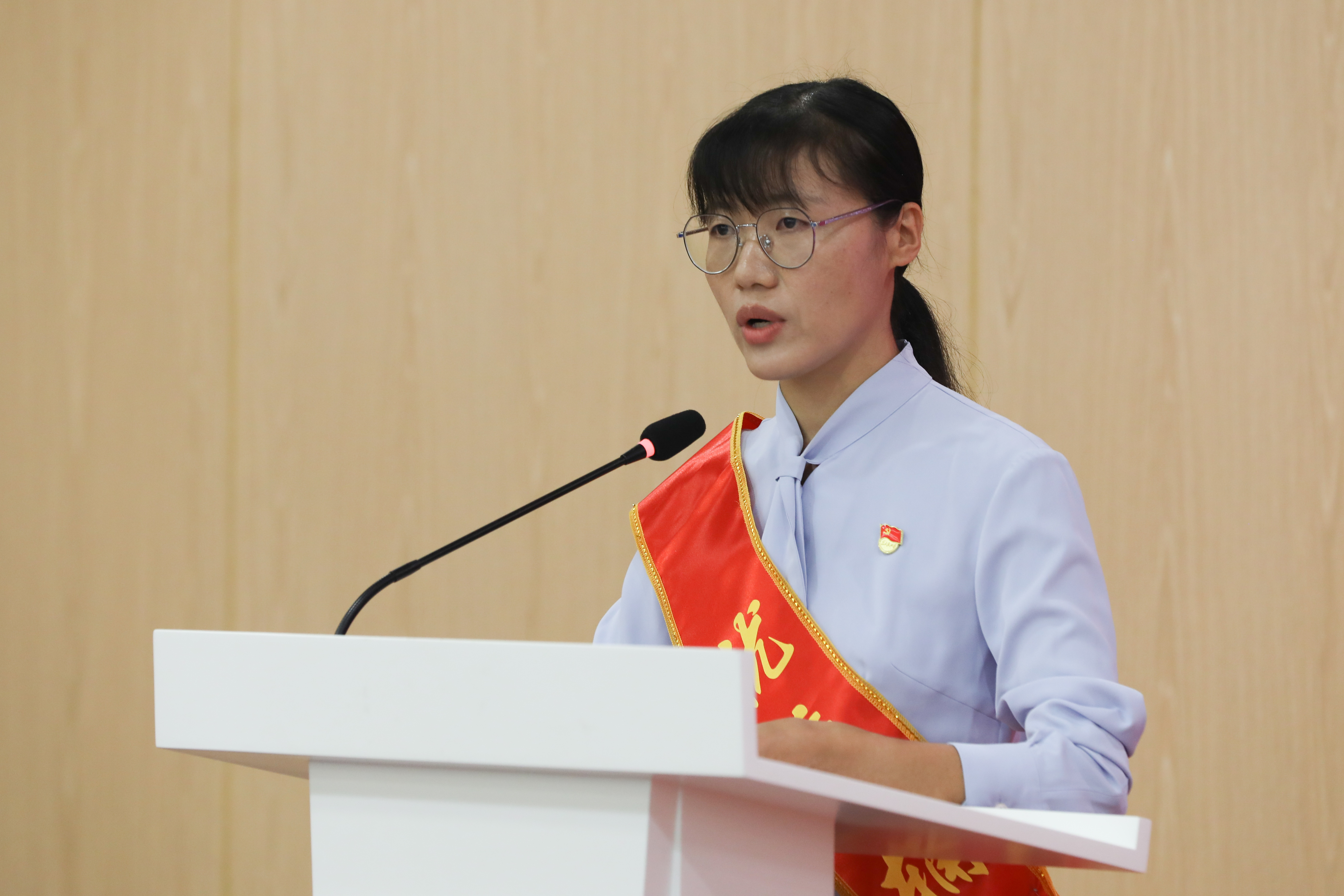 艺术与传媒学院辅导员张双作为优秀辅导员代表发言。她从“温度、高度、深度”三个关键词向各位老师分享辅导员的工作经验,她表示将牢记初心使命,落实“立德树人”教育根本任务,为党和国家的教育事业高质量发展奋勇前行,努力培养德智体美劳全面发展的社会主义建设者和接班人。