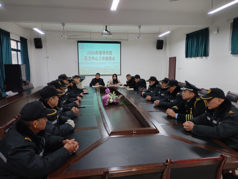 为做好新学期学校的安全保卫工作,3月1日上午,后勤保卫处在3332会议室组织召开安保工作部署会。后勤保卫处处长钟木生、副处长温怡、保卫中心全体人员、保安公司驻场经理和全体保安队员参加会议。