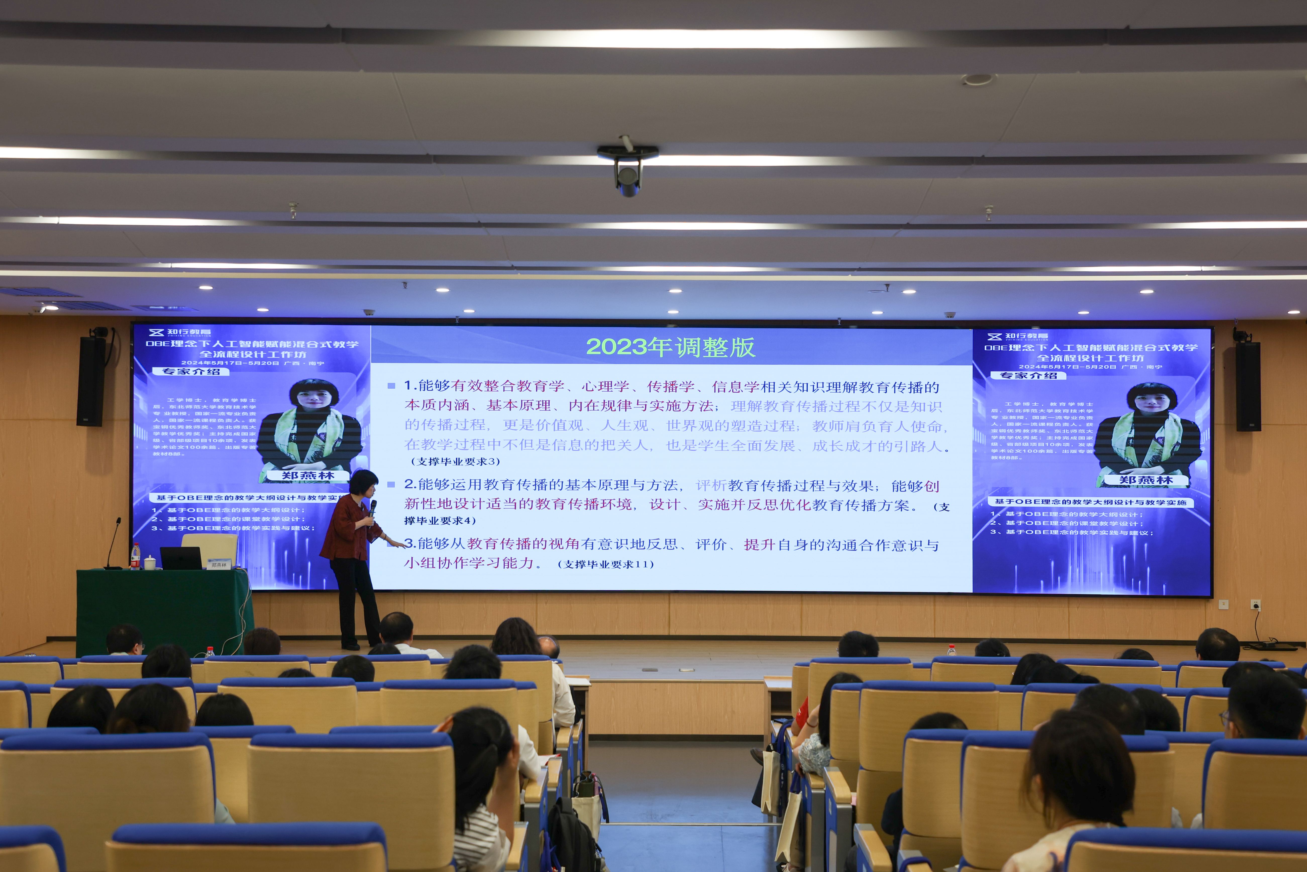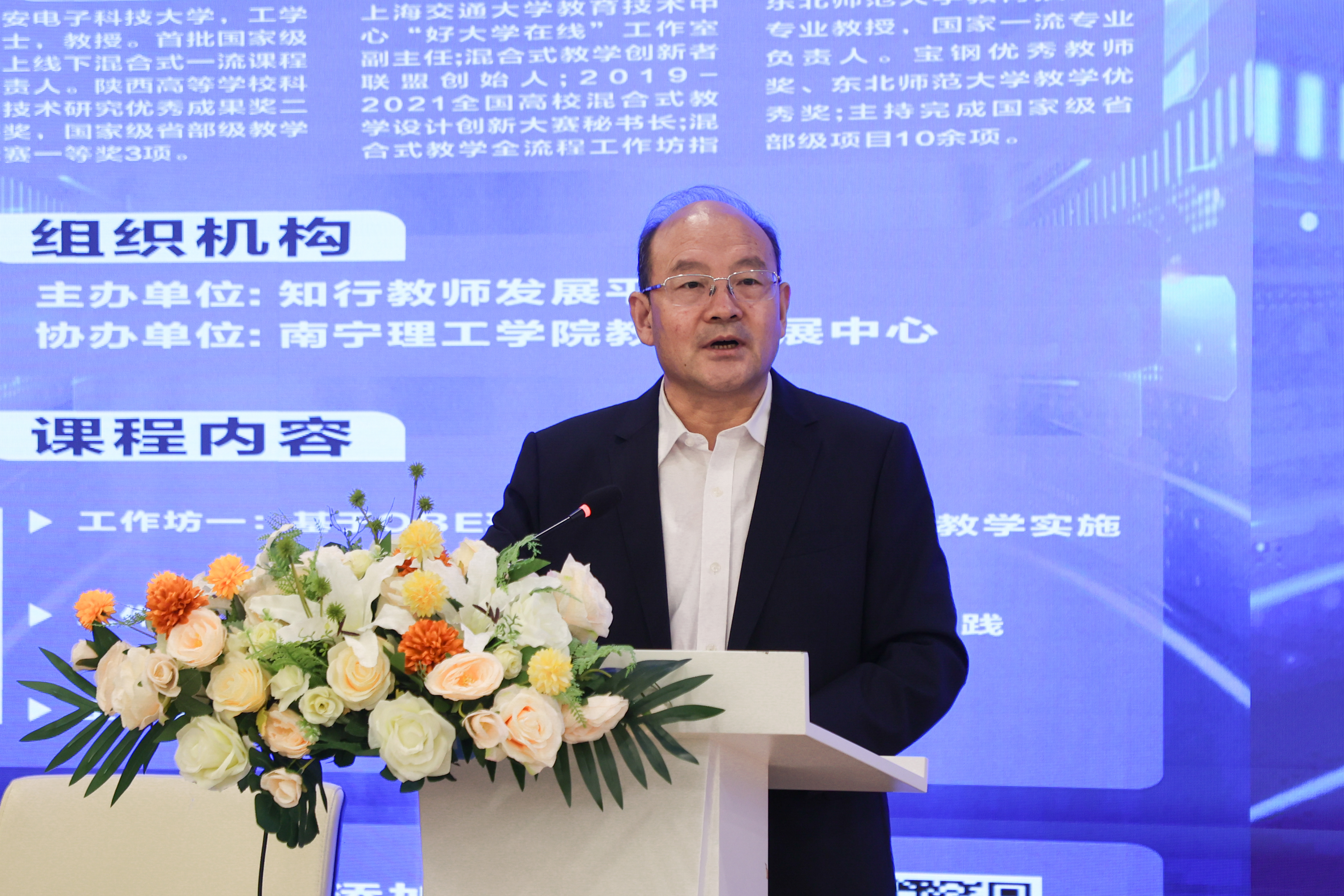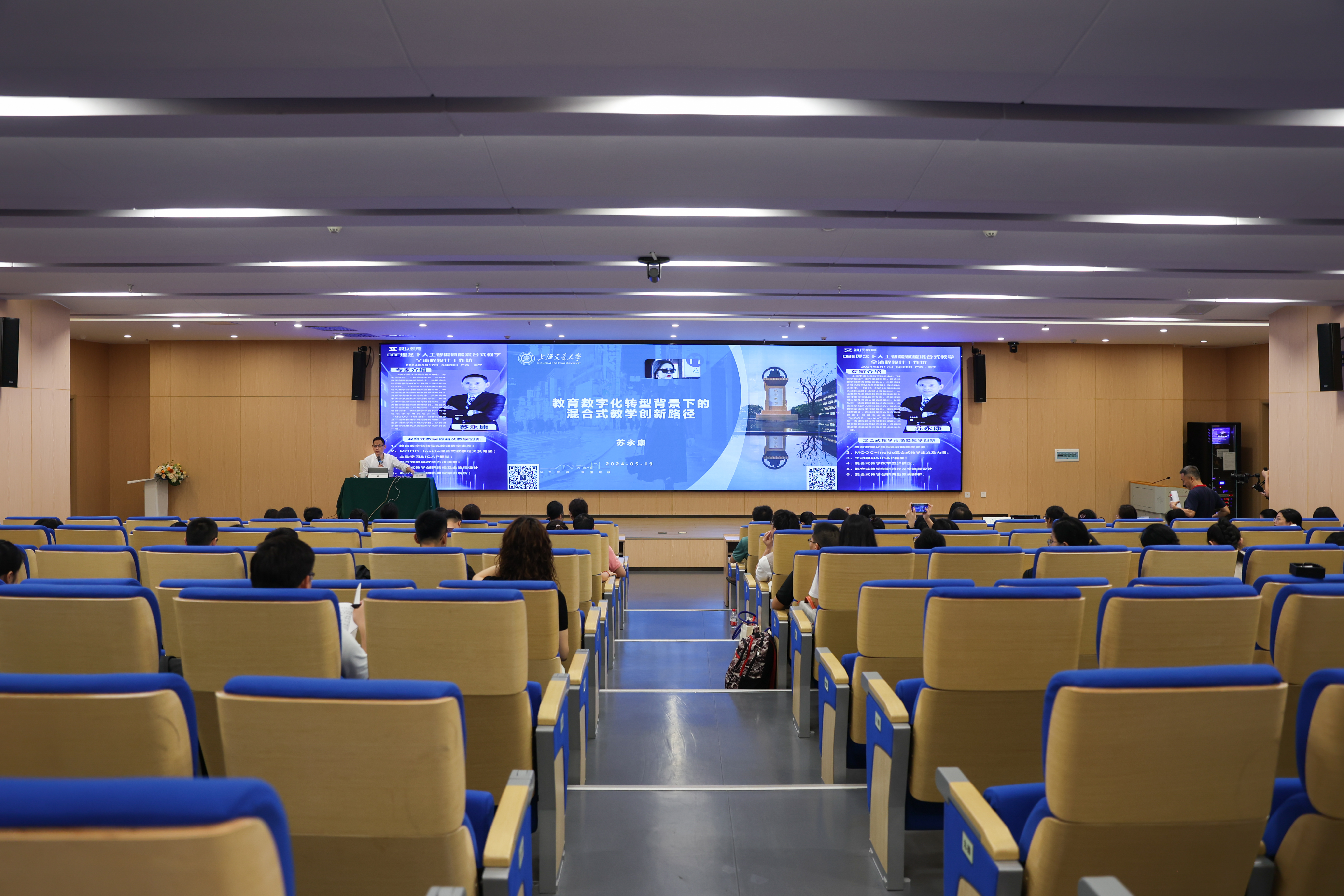 本次研修培训东北师范大学教授郑燕林作“基于 OBE 理念的教学大纲设计与教学实施”主题分享,西安电子科技大学教授谢晖作“生成式人工智能赋能混合式课程建设实践”主题分享,上海交通大学教授苏永康作“混合式教学内涵及教学创新”主题分享。