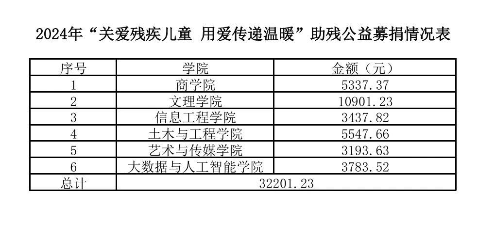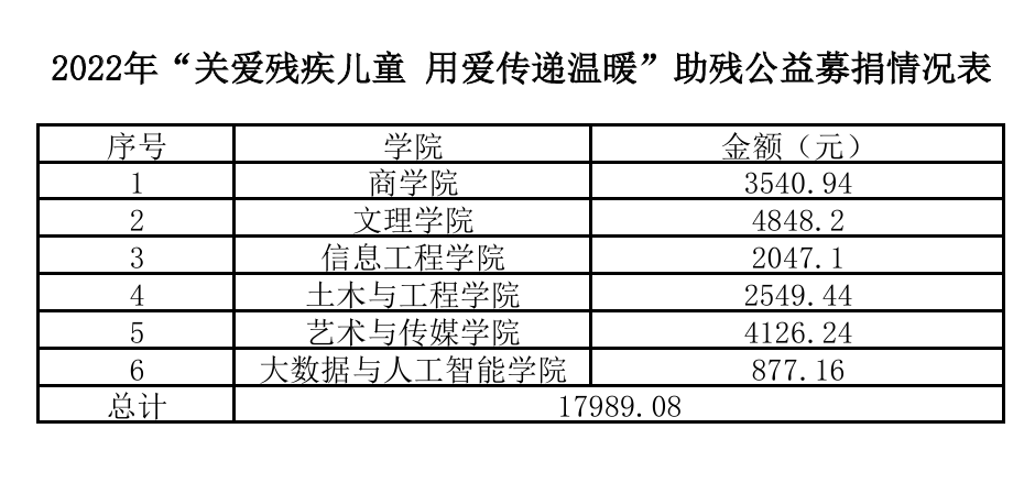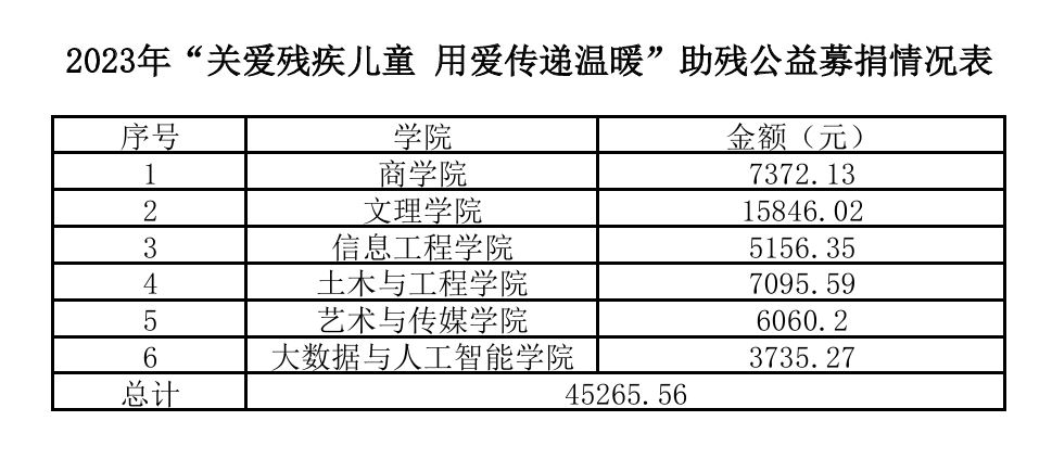 爱心无界,温暖同行。为弘扬社会主义核心价值观,为进一步推进扶残助残文明实践,促进社会文明进步,我校立即开展了公益募捐活动,收获全体师生的大力支持和帮助,让爱与责任的光芒照亮更多需要帮助的角落。本活动中,今年各学院共计捐款32201.23元。近三年,在全校的努力下共计捐95455.87元至广西残疾人福利基金会、广西民族教育基金会。