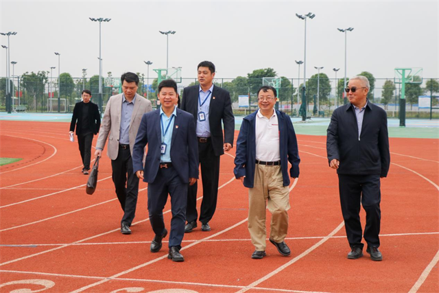 桂林学院副董事长郑善华一行还参观了校区体育场、商业街、食堂、学生公寓、教学楼、中心景观湖和艺术岛,实地考察了解新校区建设情况。