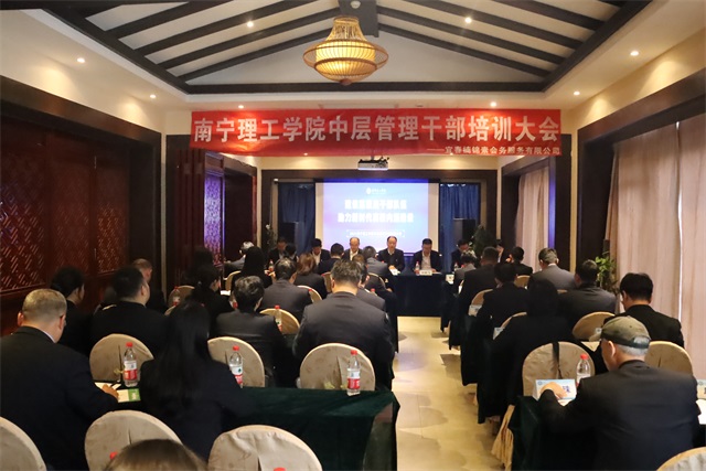 为建设高素质干部队伍,助力新时代高校内涵建设,11月19日上午,我校2021年中层管理干部培训班于阳朔县汉唐馨阁酒店正式开班,学校领导尹少华、王金叶、金飞、王加青、杨鲜丽、郑方兵出席开班仪式,学校全体中层干部参会。本次开班仪式由副校长杨鲜丽主持。