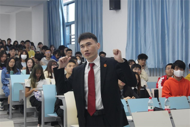11月29日下午,南宁市武鸣区人民法院里建法庭黄品雁副庭长到我校东盟校区开展“宪法与我们的生活”主题讲座。他围绕宪法的定义、宪法的基本内容、宪法和法律的关系、以及宪法与我们的生活四个方面向同学们介绍了宪法,通过讲授、案例分析、现场互动相结合的方式,使同学们提高了学习宪法的兴趣,增加了同学们对宪法的了解。