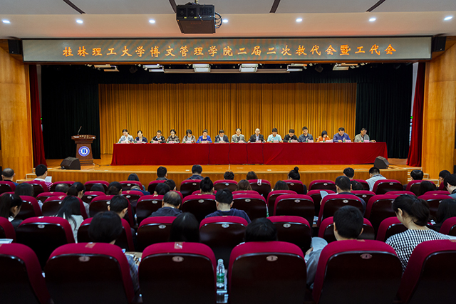5月7日,桂林理工大学博文管理学院二届二次教职工暨工会会员代表大会在1626报告厅隆重举行。全体校领导、正式代表、列席代表共89人参加会议,共同为推动学校各项事业健康发展建言献策。