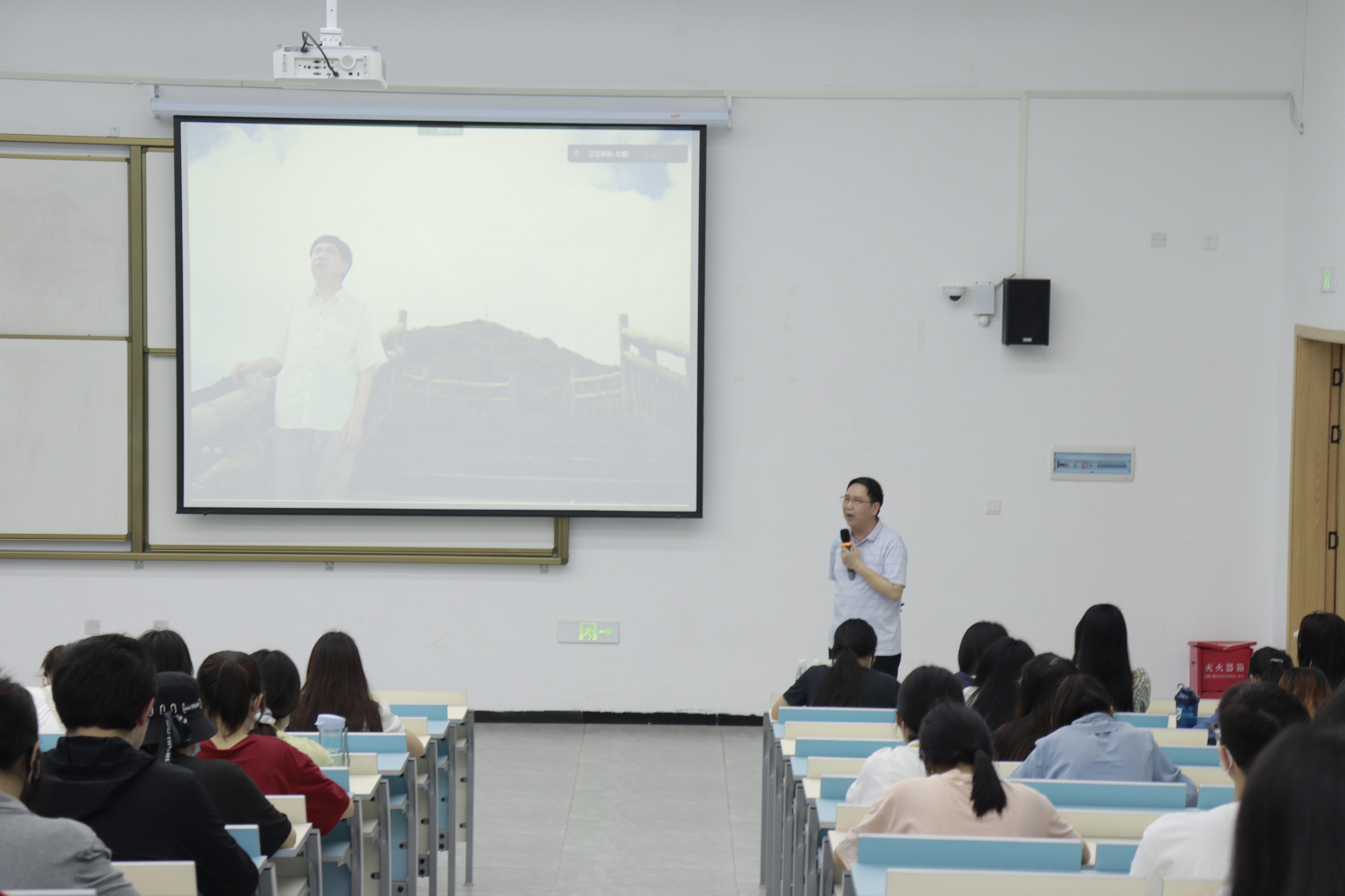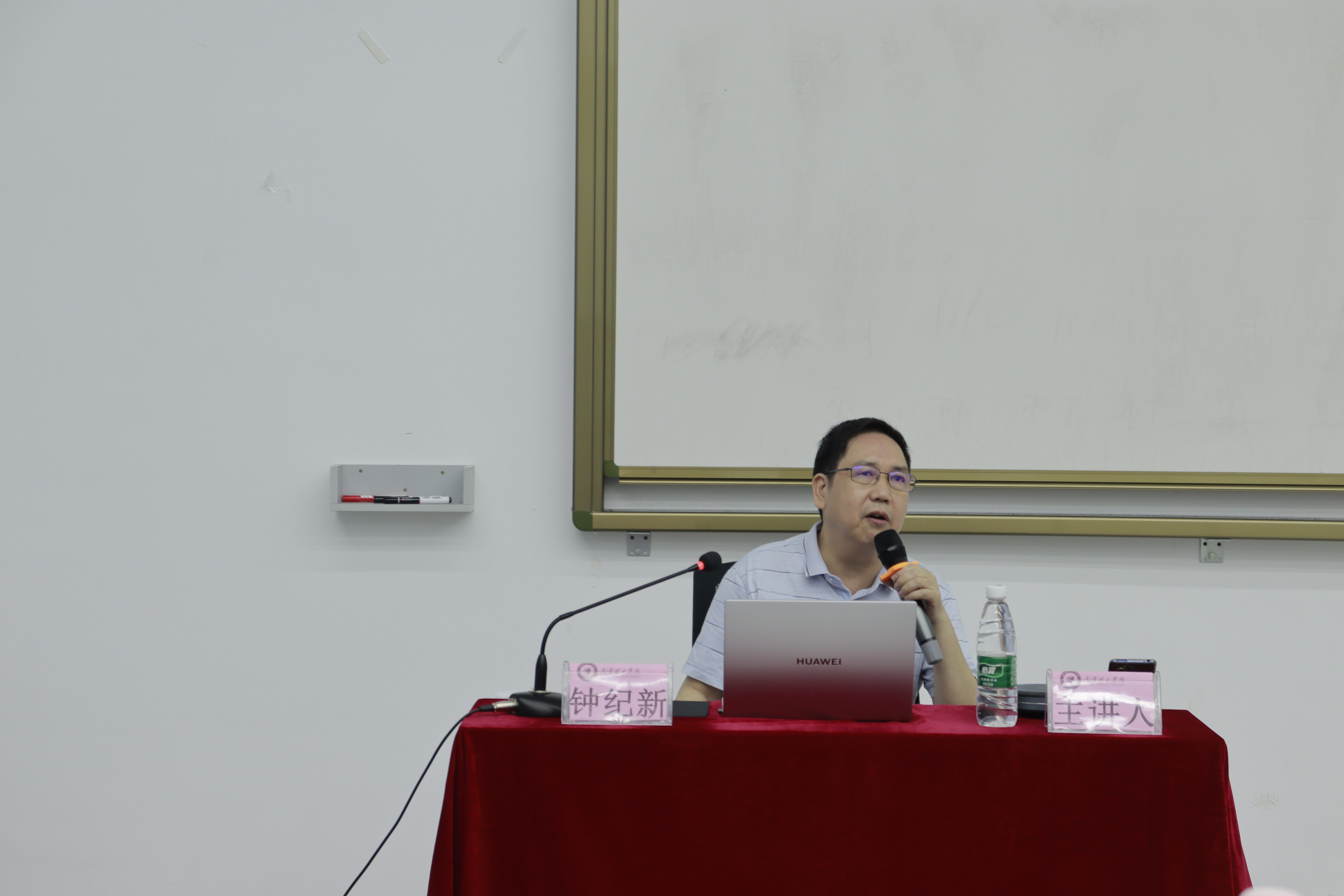 钟纪新老师以自身诗词创作经历引入,并从全新角度讲解中国诗歌魅力,他用幽默诙谐的语言和丰富的实例并结合自己的亲身经历,详细分析文化自信对中华民族伟大复兴的重要意义,并呼吁同学们保持学习的热情,在青春的赛道上跑出当代青年的最好成绩。
