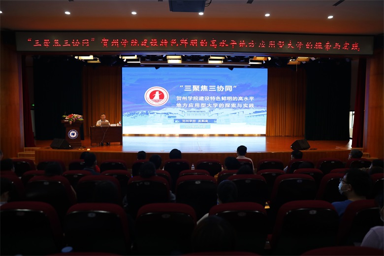 吴郭泉校长从“贺州学院的发展建设情况”、“对应用型大学的基本认识”、“高等教育面临的机遇和挑战”和“应用型大学建设的体会和思考”四大方面内容,深入阐述了应用型高校的特点、发展轨迹、建设思路以及地方本科高校面临的挑战等内容。吴校长强调,要全力建设神形兼备的应用型大学,做好“形似、神似和神形兼备”三个发展阶段,抢抓“危机中育新机,与变局中开新局”的发展机遇,推进“人才培养合力、内生发展动力、创新创业能力”和“产教融合协调育人、校地融合协同创新、专创融合协同发展”的“三聚焦三融合”发展模式,努力为适应地方和区域经济社会发展培养高素质应用型人才。