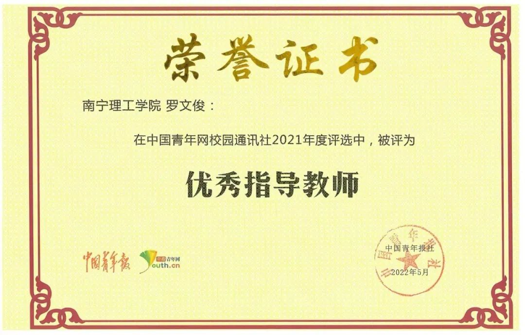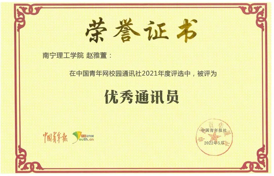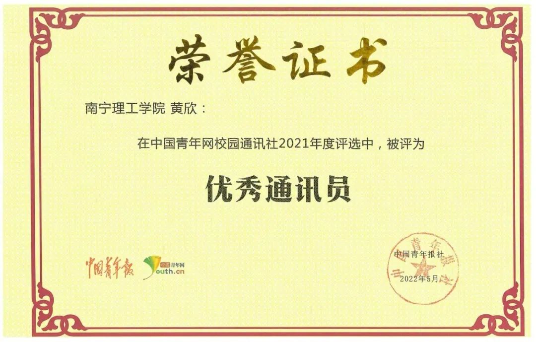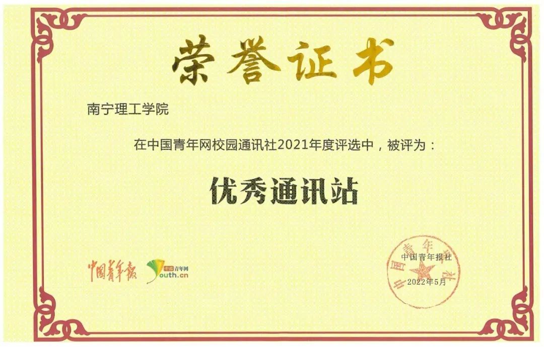近日,中国青年网发布“中国青年网校园通讯社2021年度评选活动评选结果通报”,经作品初审、网络评选、打分复审、年度考核等环节,共评选出了100所优秀通讯站、99名优秀指导教师、131名优秀通讯员、100篇优秀原创稿件及其作者。