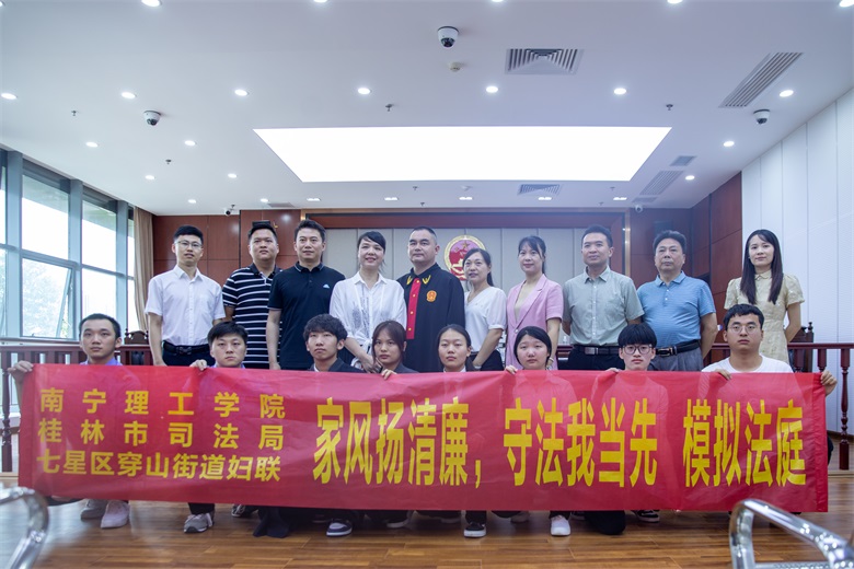 为贯彻落实习近平总书记系列重要讲话精神,持续推动民法典走入日常、走入青年、走入校园,增强青年学生的法制意识和纪律规矩意识,不断推动“清廉学校”建设,坚定捍卫“两个确立”、忠实践行“两个维护”,进一步弘扬清廉党建作风。2022年6月28日上午,我校联合桂林市司法局、桂林市七星区妇联在桂林市人民政府行政复议法庭举办了一场模拟法庭庭审活动。