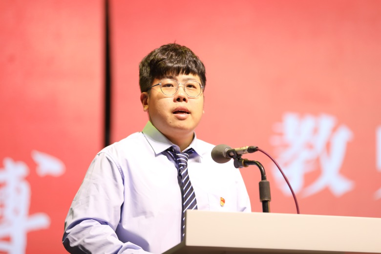 文理学院英语专业才卓男老师代表教师讲话,他希望同学们在接下来的大学生活中能够学会思考,做个有思想的人,思考昨天没能听懂的问题,思考今天正在接受的信息,思考未来的路途会通向哪里;能够精于专业,做个有能力的人,了解专业领域前沿的发展,夯实专业基础知识的学习,热忱于专业相关兴趣的培养;能够热爱生活,做个有热情的人,去挑战,走出舒适圈,发掘自己身上从未显露的潜力。