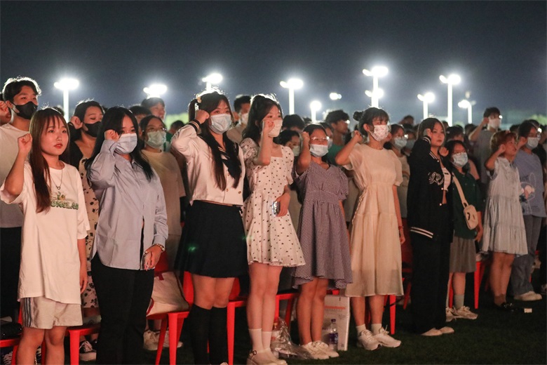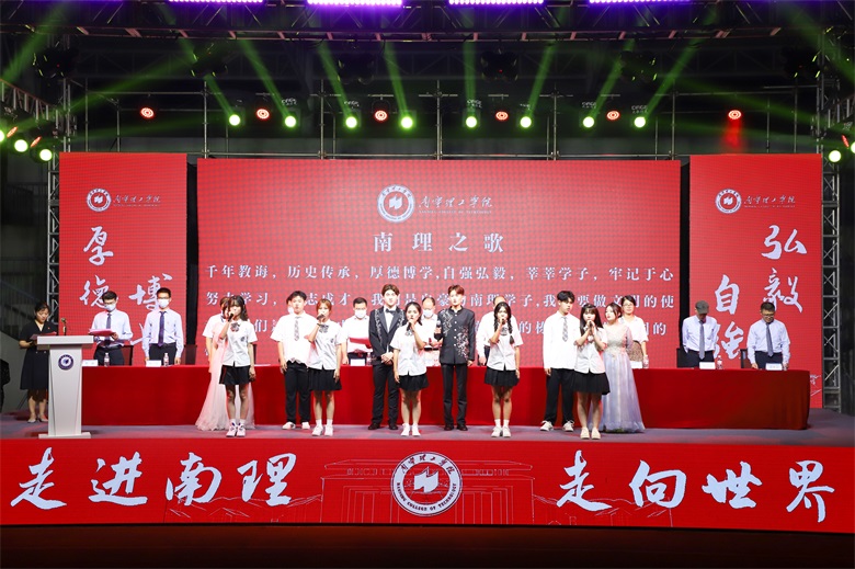 大会最后,全体新生进行开学宣誓,齐唱《南理之歌》,高亢的誓词和嘹亮的歌声回荡在南理上空。
