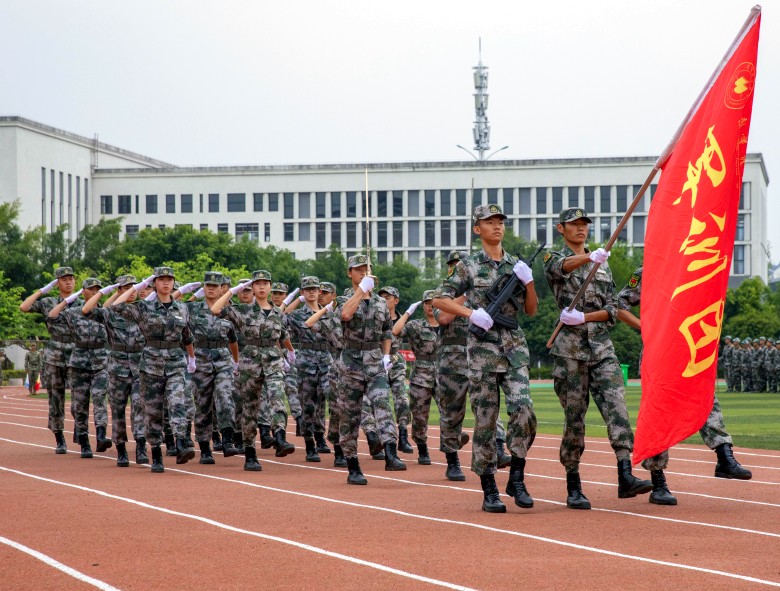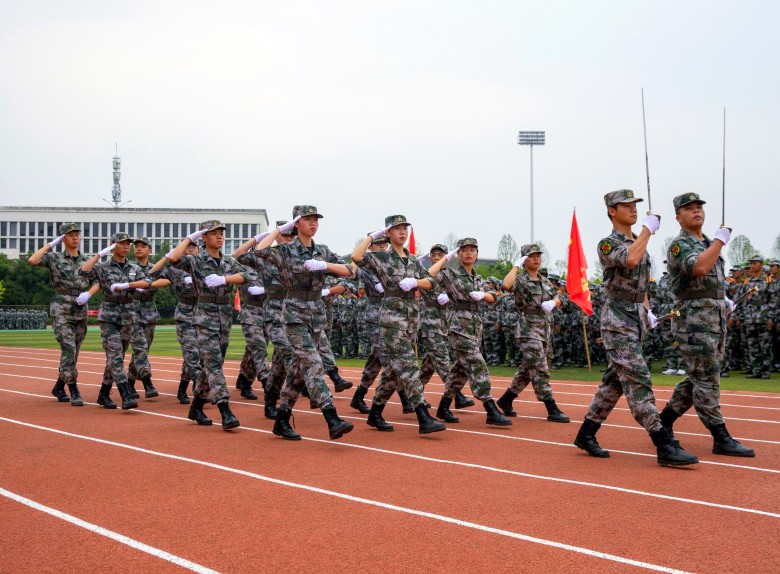 军训汇演暨总结表彰大会在庄严肃穆的国歌声中拉开帷幕。伴随着雄壮激昂的《中国人民解放军进行曲》,各方队进行分列式表演。受训新生军姿挺拔,迈着矫健的步伐,喊着响亮的口号正步通过主席台,接受检阅。新生代表还进行了捕俘拳、捕俘刀、数字方阵、旗语、舞旗等精彩的军事训练表演,整套动作整齐划一、刚劲有力,以实际行动展示了军训的丰硕成果, 充分彰显出南理学子顽强奋斗、不畏艰苦的精神风貌。