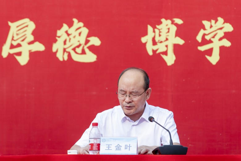 校长王金叶作军训总结讲话。他代表学校全体师生向辛勤付出汗水的承训部队领导及全体教官表示衷心的感谢,对受表彰的军训先进集体和先进个人以及圆满完成本次军训任务的全体同学表示热烈的祝贺。他指出,要把军训过程中培养起来的顽强意志、组织纪律观念、团结协作精神和爱国热忱发扬光大,在未来的学习和生活中刻苦钻研、不断加强道德修养,主动地将个人的青春梦汇入中国梦的伟大洪流,把自己培养成为敢于担当、乐于奉献的新时代青年。