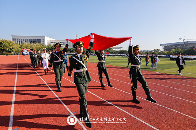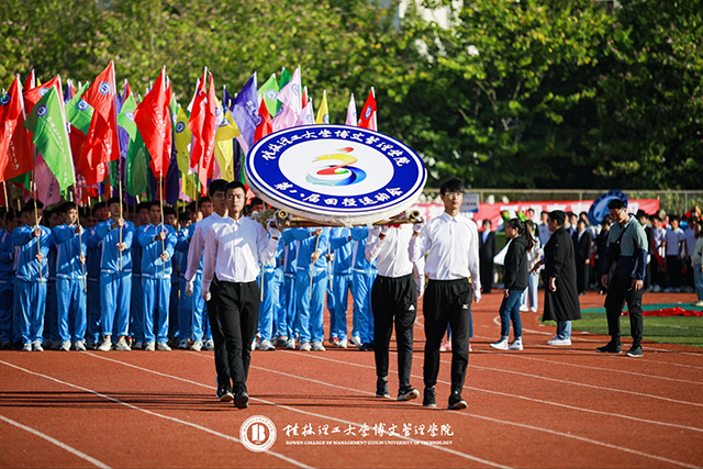 《运动员进行曲》振奋人心,在国旗队、校旗队、会徽队、鲜花队和彩旗队的引领下,各二级学院代表队和教职工方阵迈着整齐的步伐、喊着嘹亮的口号昂首步入会场,接受主席台领导的检阅。大家以饱满的热情和昂扬的姿态充分展示了博文师生的青春风采和蓬勃向上的精神风貌。