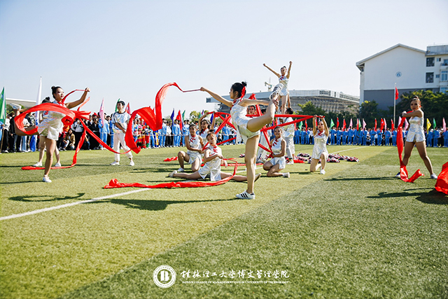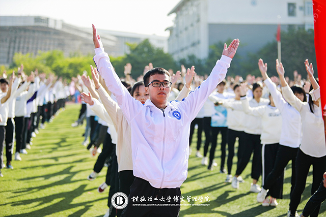 随后举行各二级学院广播操和啦啦操比赛。广播操比赛动作整齐到位,啦啦操表演动感激情,活力四射,将博文学子团结一致、积极向上、勇敢拼搏和挑战自我的新时代大学生形象展现得淋漓尽致,赢得现场热烈欢呼。