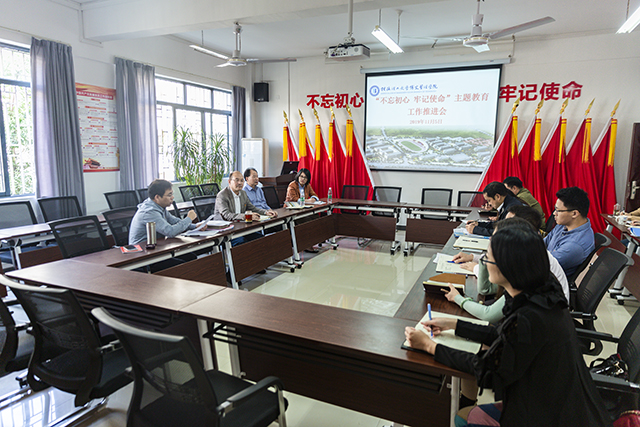 11月5日下午,学校在3317党员活动室召开“不忘初心、牢记使命”主题教育工作推进会,部署安排下一步学校主题教育相关工作。学校主题教育领导小组成员,各党总支书记,党政办公室相关人员参加会议。会议由校党委书记金飞主持。