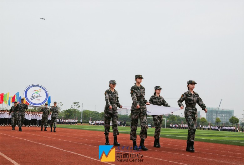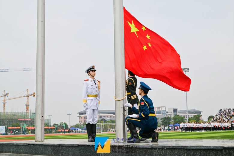 伴随着雄壮激昂的《运动员进行曲》,国旗队、校旗队、会徽队依次有序入场。英姿飒爽,整齐规范,笔直的身影和整齐划一的动作展现出他们心中的爱国信念。“忠于祖国,心系职责”是他们的誓词;“护我国旗,壮我国威”是他们的使命。