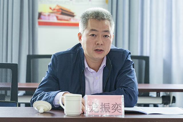 龙振奕对我校“不忘初心、牢记使命”主题教育开展情况给予充分肯定,认为我校自主题教育启动以来,学校领导班子高度重视,组织谋划系统全面,工作开展扎实有力,取得一定的实际成效。他对我校下一步主题教育的开展提出几点要求,一是要注重及时跟进学习,在下一步的主题教育工作中融入学习贯彻十九届四中全会精神;二是加强分类指导,推动主题教育全覆盖高质量开展;三是继续查找问题,区分问题种类,推动整改落实。